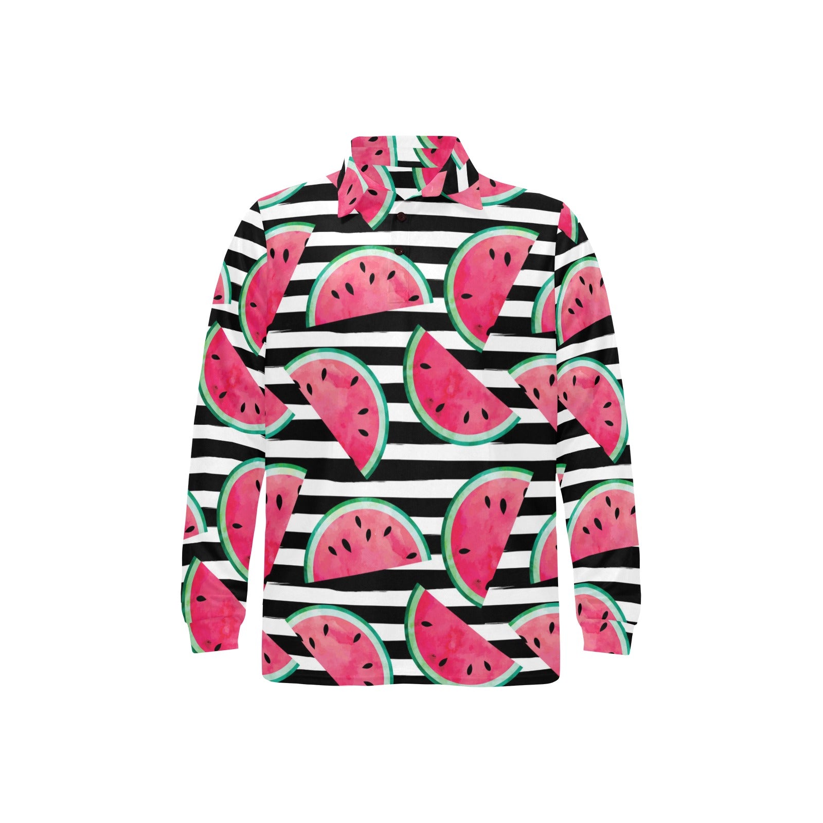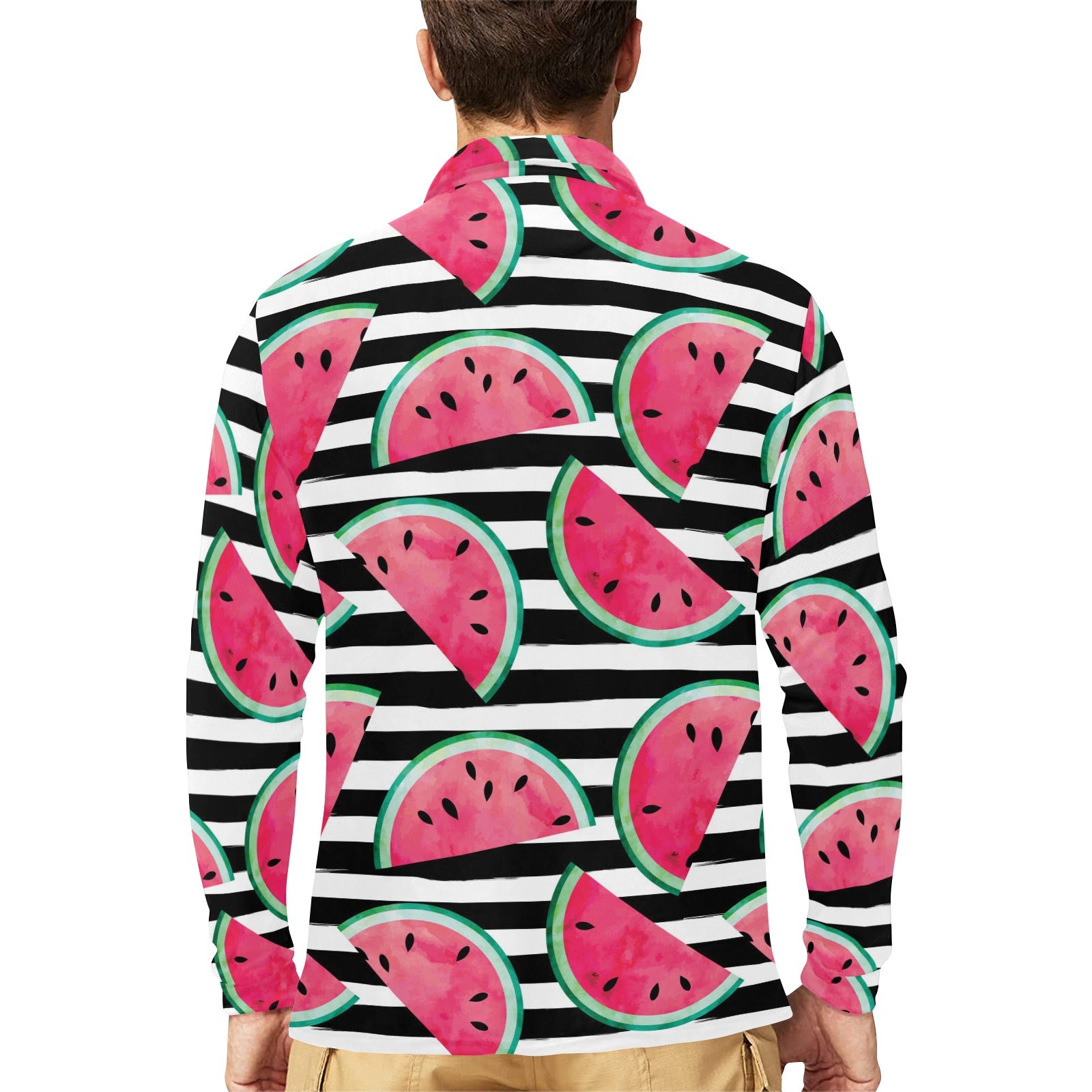 Watercolor paint textured watermelon pieces Men's Long Sleeve Polo Shirt