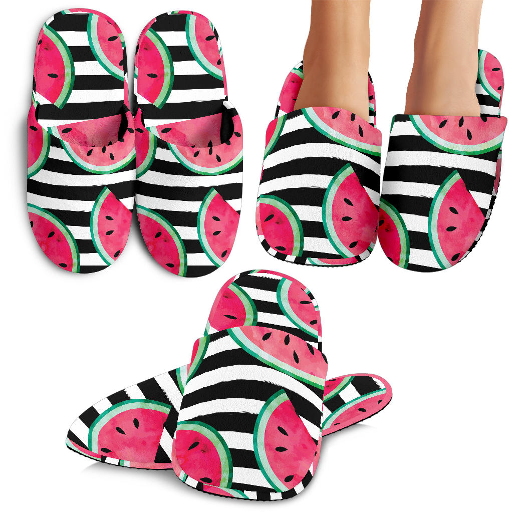Watercolor paint textured watermelon pieces Slippers are uniqued design and limited item. It made to order, hand printed, and sewn with love in our factory.