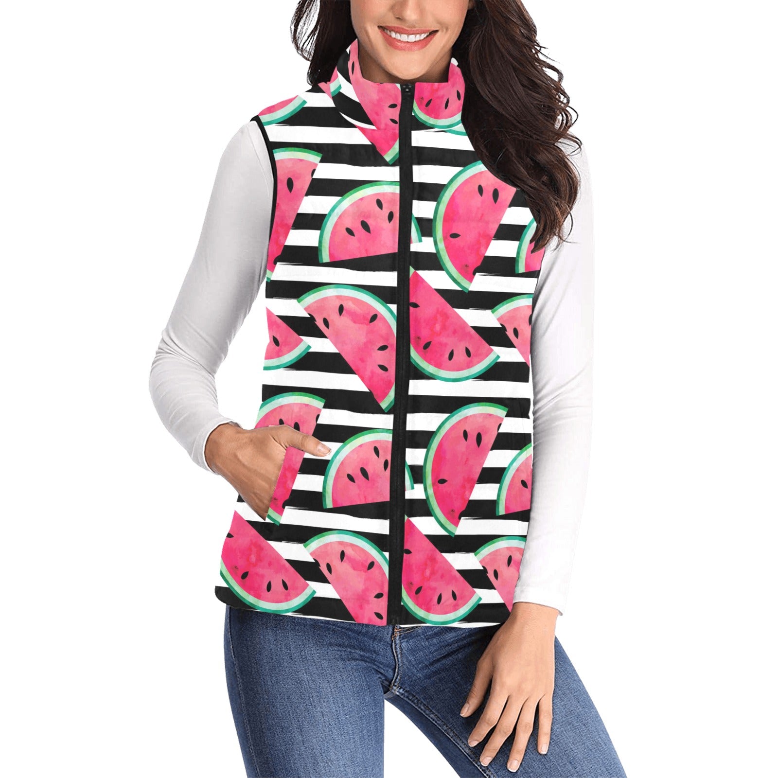 Watercolor paint textured watermelon pieces Women's Padded Vest