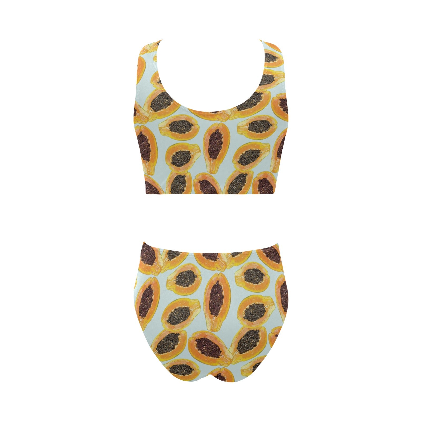 Watercolor papaya pattern Chest Bowknot High Waisted Bikini Swimsuit