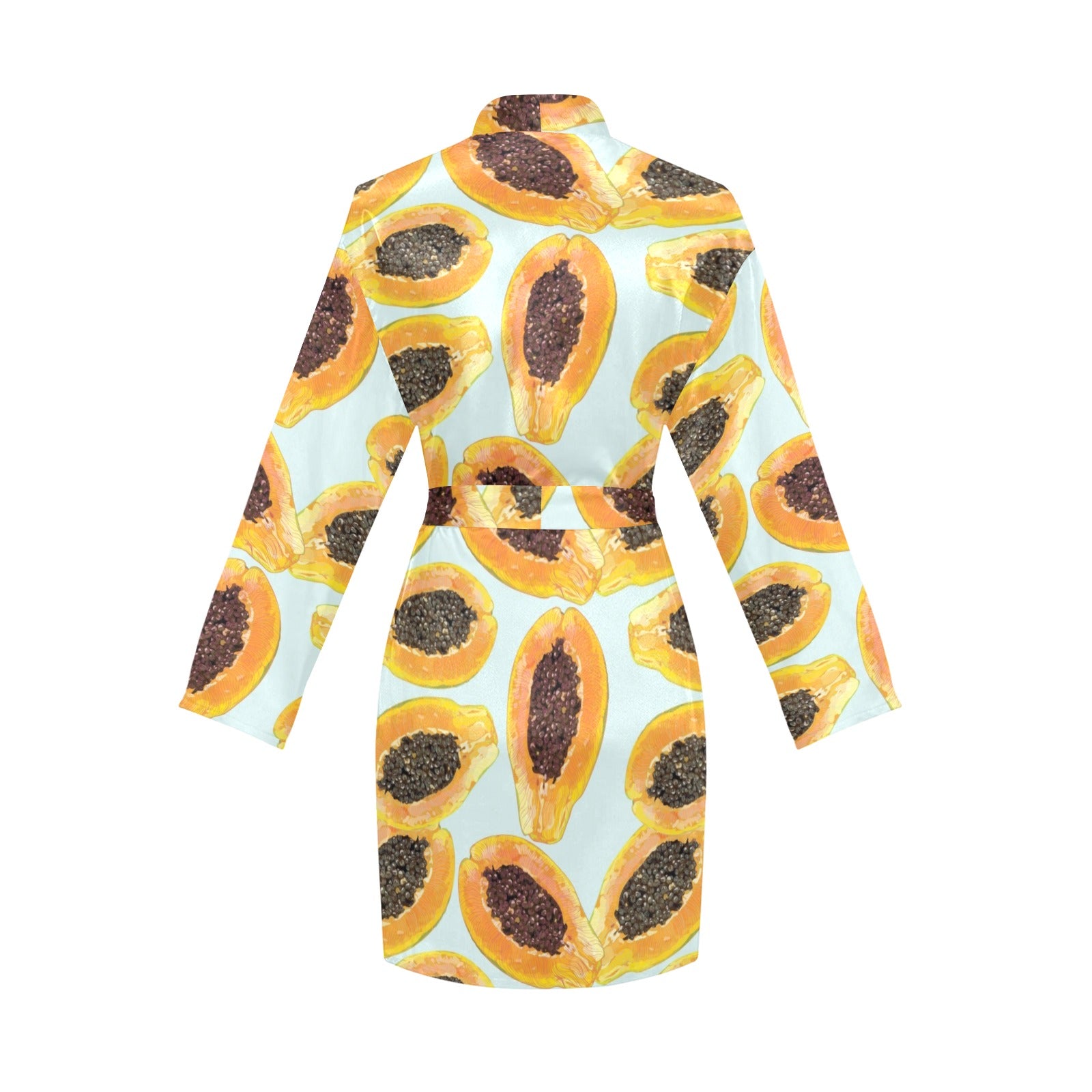 Watercolor papaya pattern Women's Long Sleeve Belted Night Robe