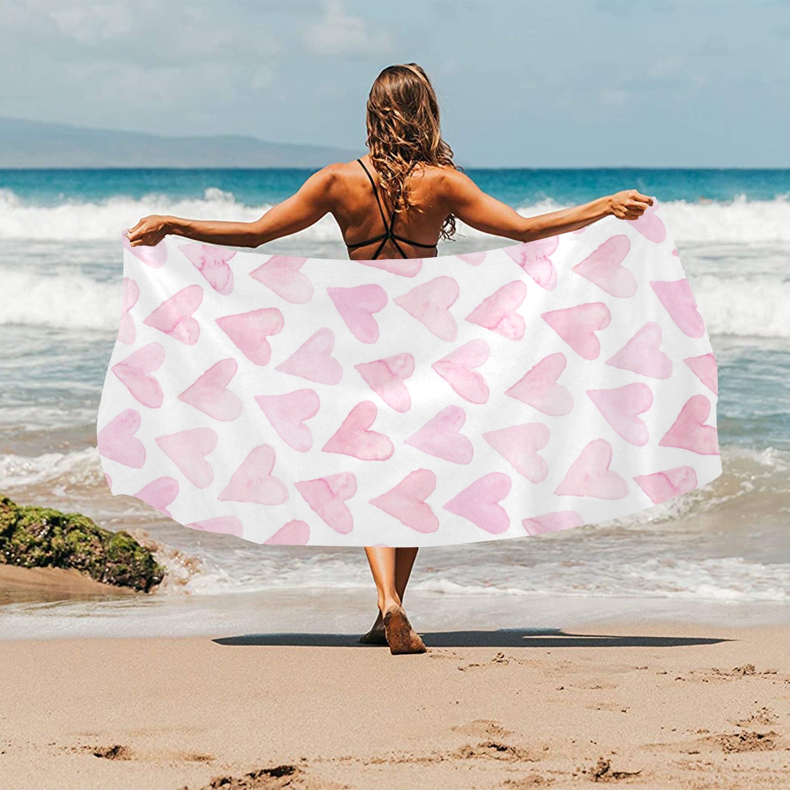 Watercolor pink heart pattern Beach Towel