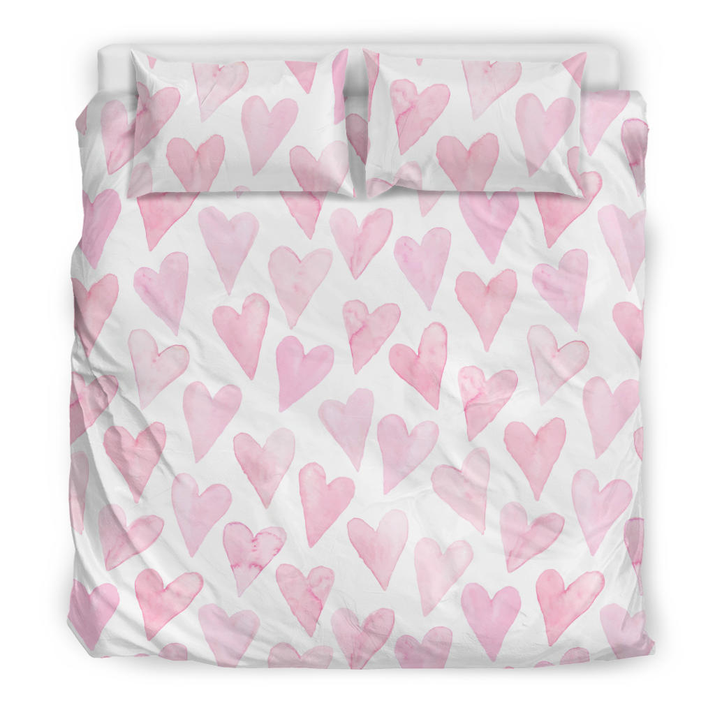 Watercolor pink heart pattern Bedding Set is a uniqued design and limited item. It made to order, hand printed, and sewn with love in our factory.