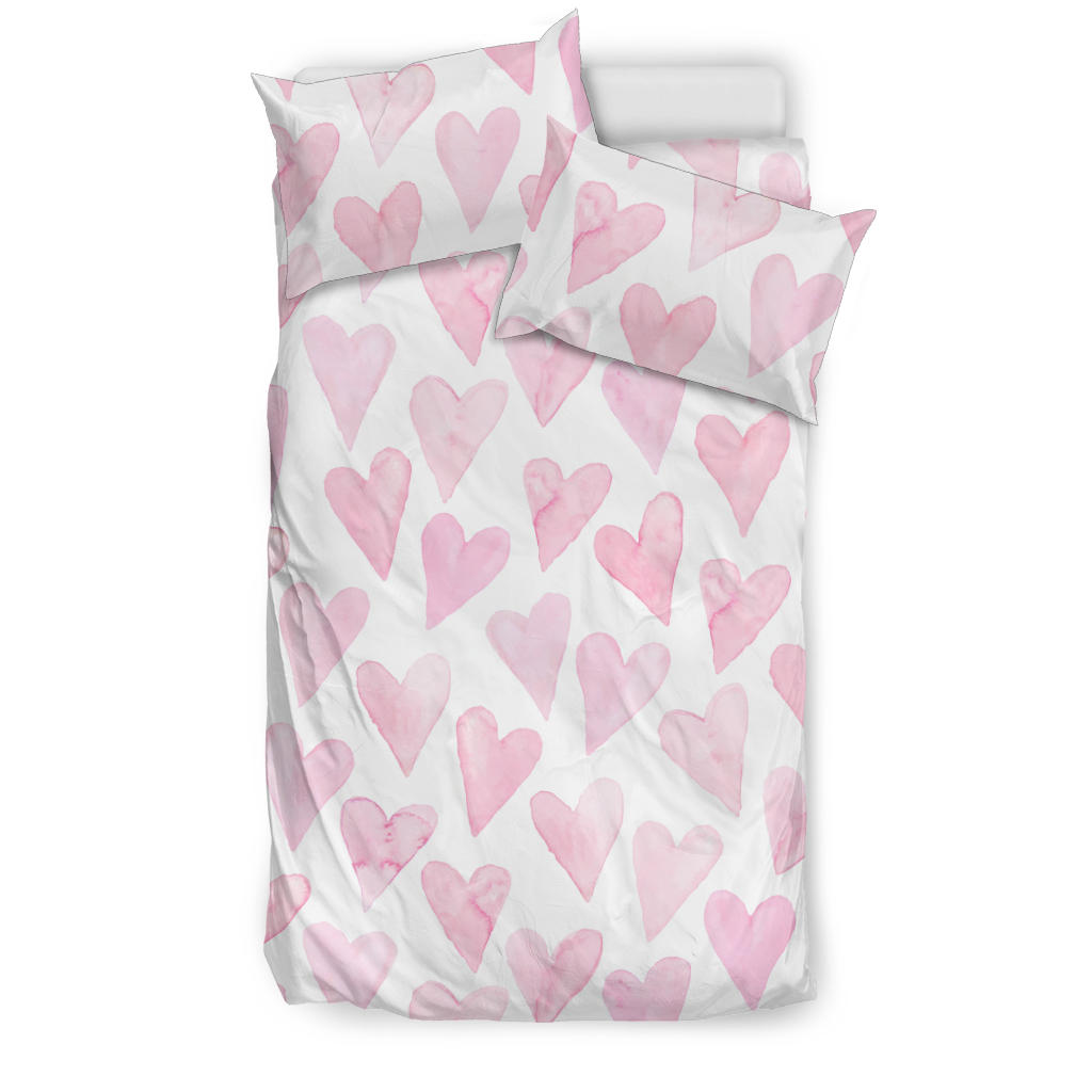Watercolor Pink Heart Pattern Bedding Set