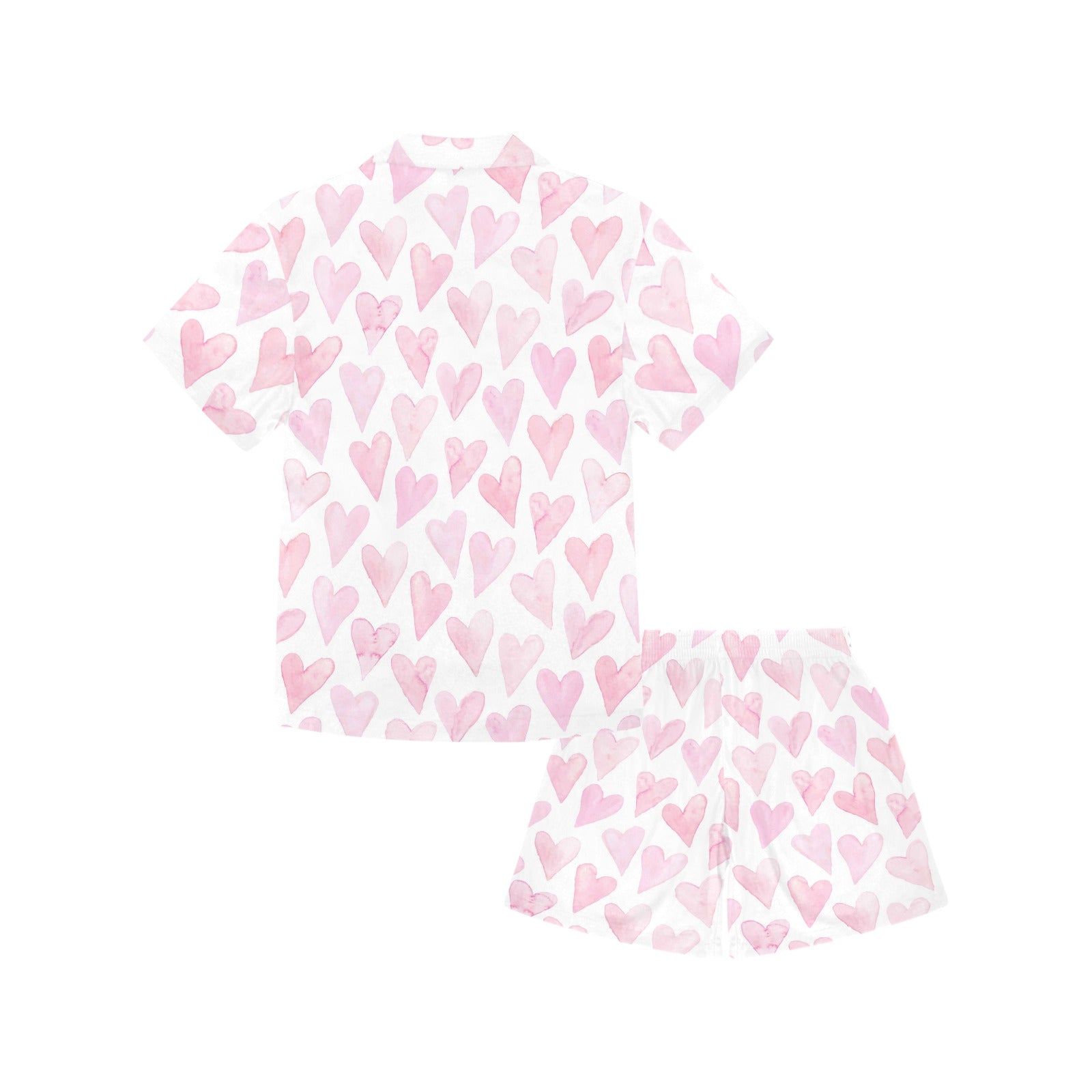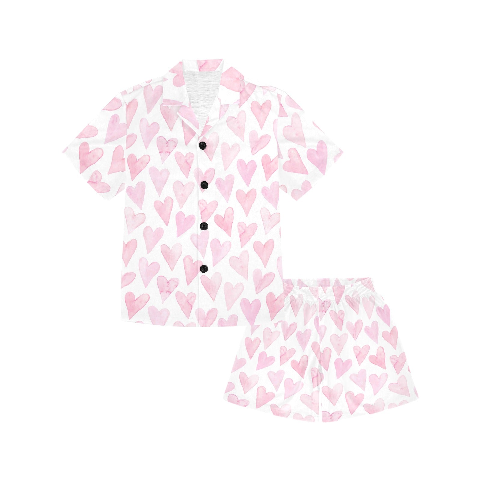 Watercolor pink heart pattern Kids' Boys' Girls' V-Neck Short Pajama Set