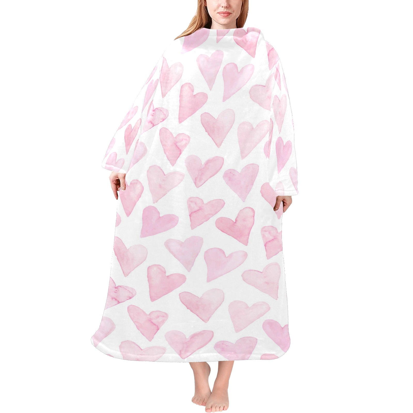 Watercolor pink heart pattern Blanket Robe with Sleeves
