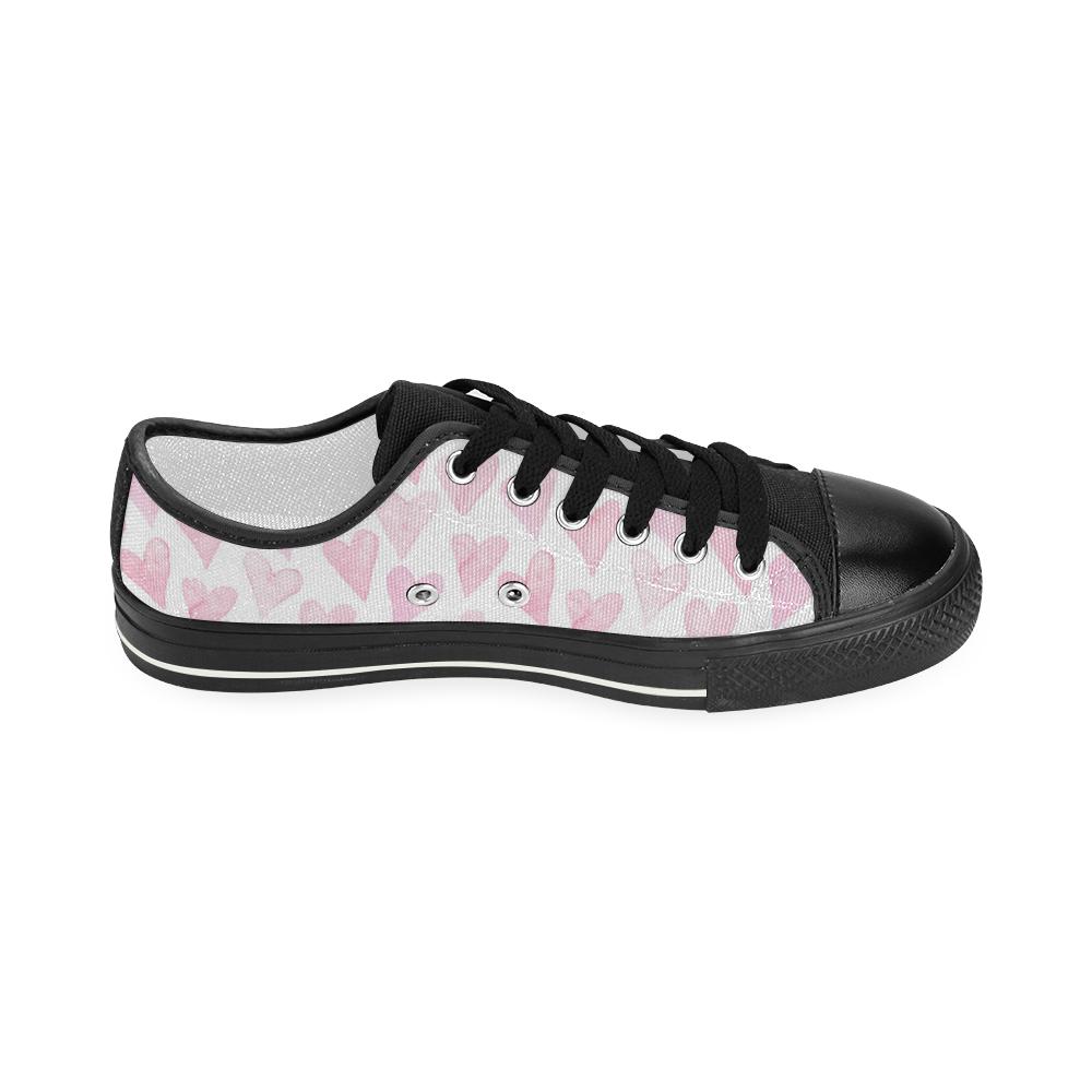 Watercolor pink heart pattern Kids' Boys' Girls' Low Top Canvas Shoes Black