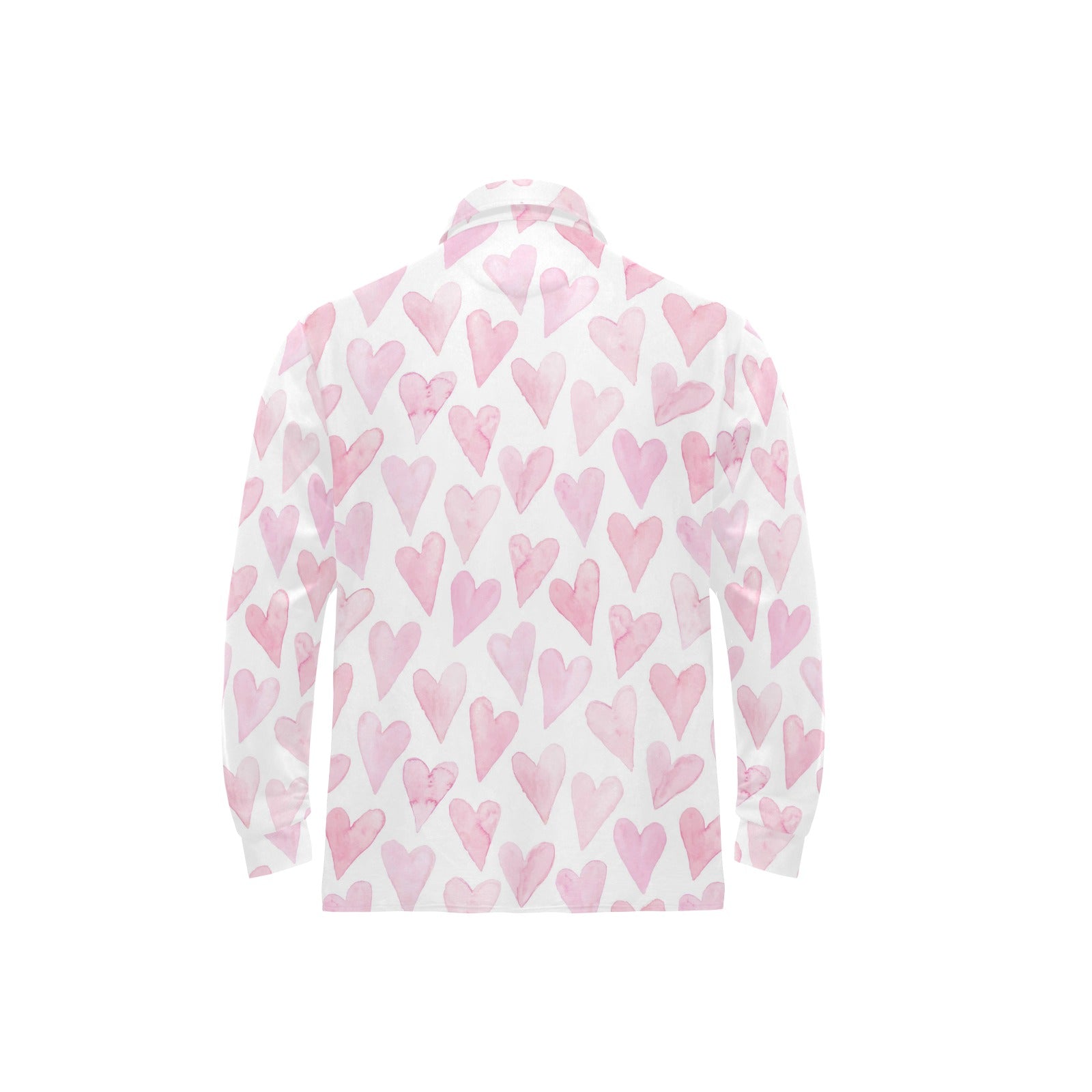 Watercolor pink heart pattern Men's Long Sleeve Polo Shirt