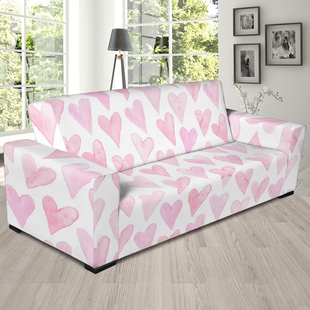 Watercolor Pink Heart Pattern Sofa Slipcover