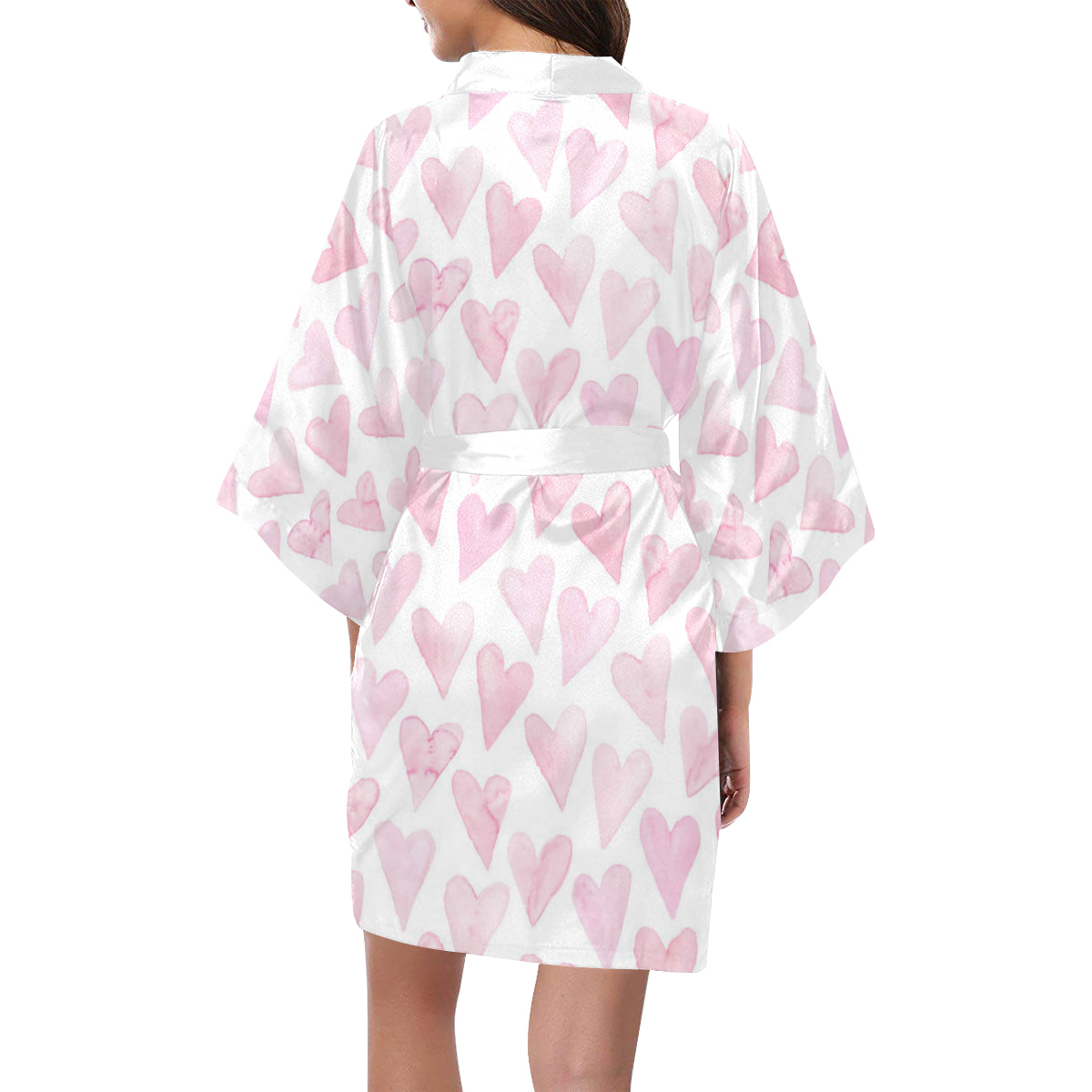 Watercolor pink heart pattern Women's Short Kimono Robe