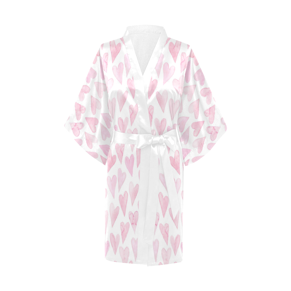 Watercolor pink heart pattern Women's Short Kimono Robe is a uniqued design and limited item. It made to order, hand printed, and sewn with love in our factory.