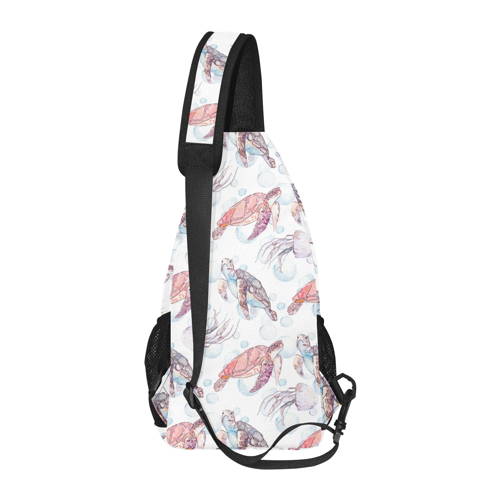 Watercolor sea turtle jellyfish pattern All Over Print Chest Bag
