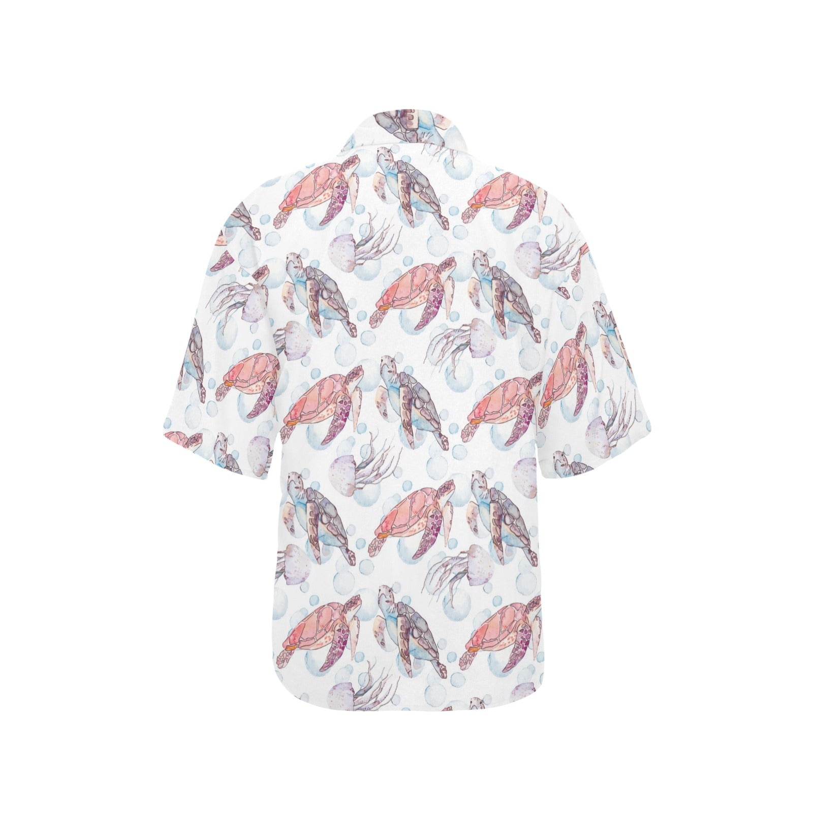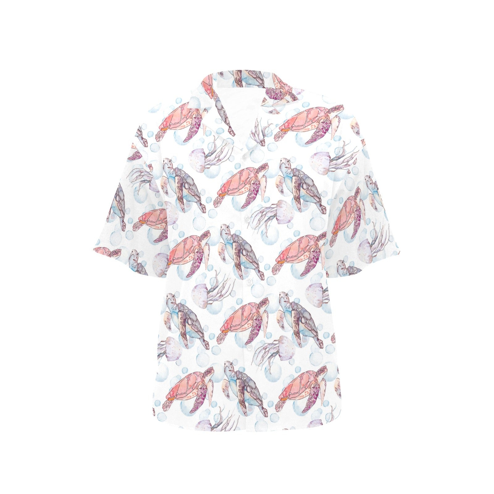 Watercolor sea turtle jellyfish pattern Women's All Over Print Hawaiian Shirt