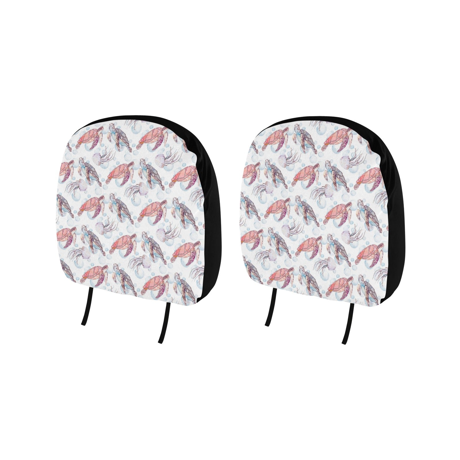 Watercolor sea turtle jellyfish pattern Car Headrest Cover