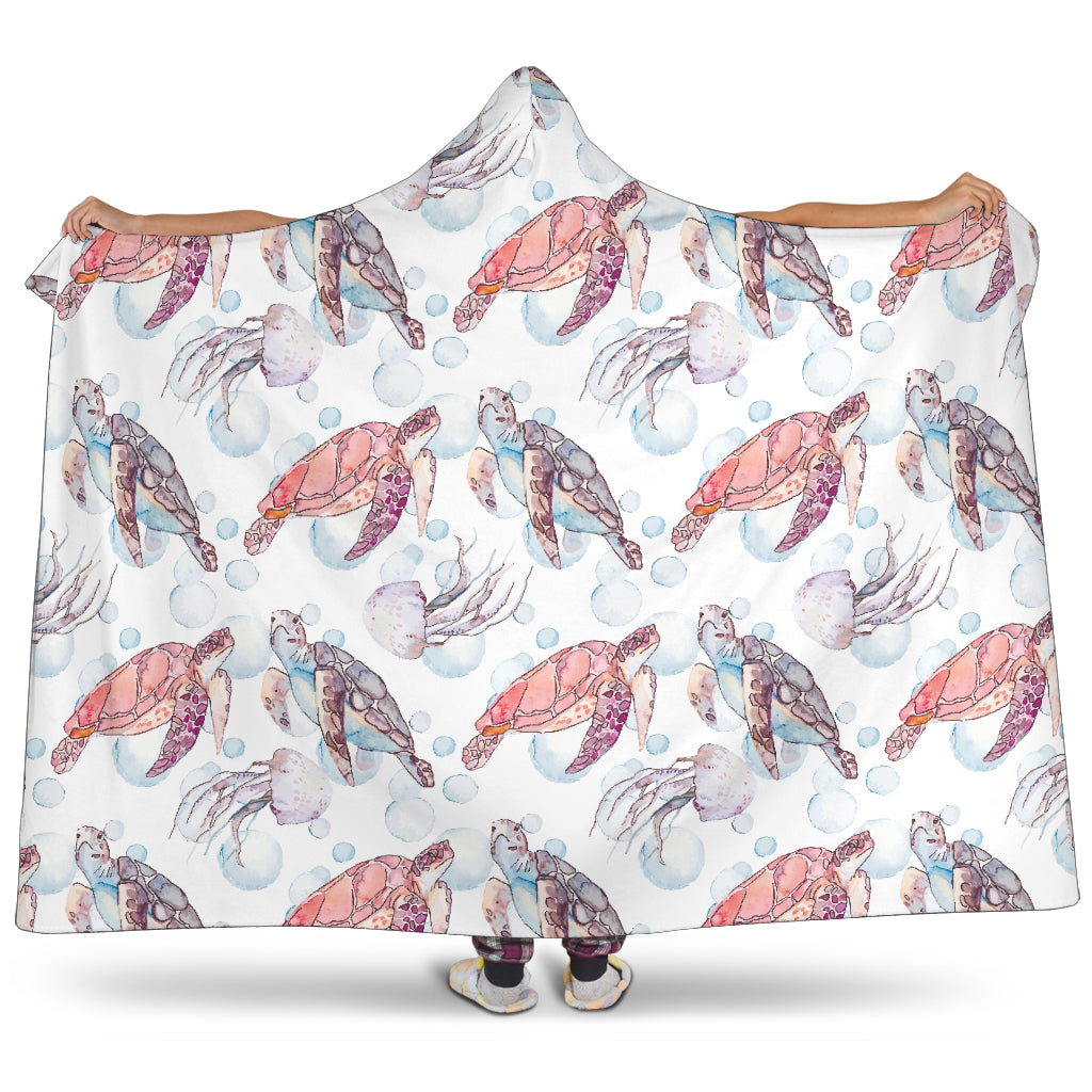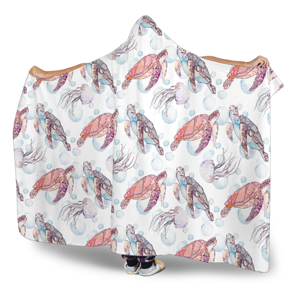 Watercolor sea turtle jellyfish pattern Hooded Blanket are custom-made-to-order and handcrafted to the highest quality standards.