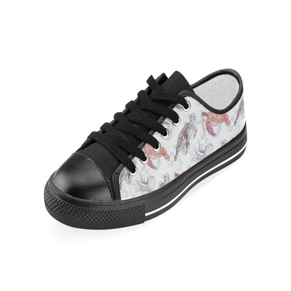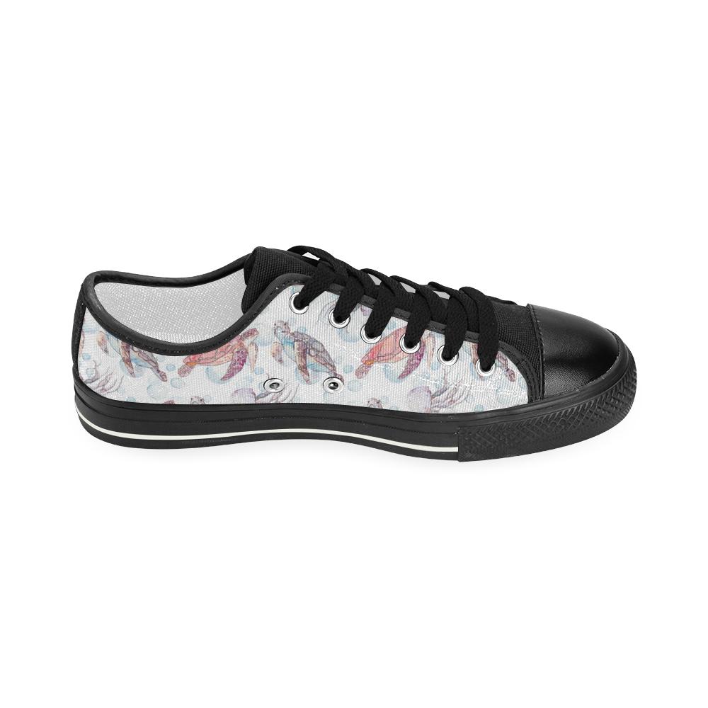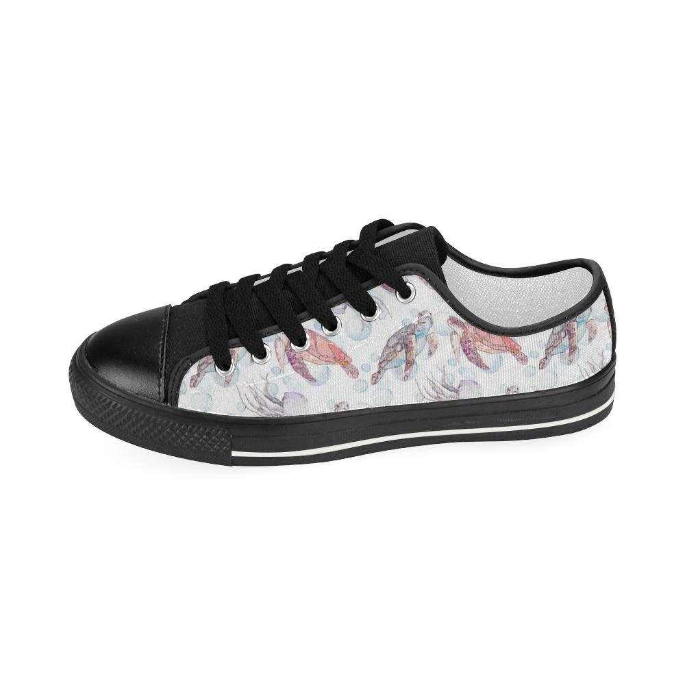 Watercolor sea turtle jellyfish pattern Kids' Boys' Girls' Low Top Canvas Shoes Black