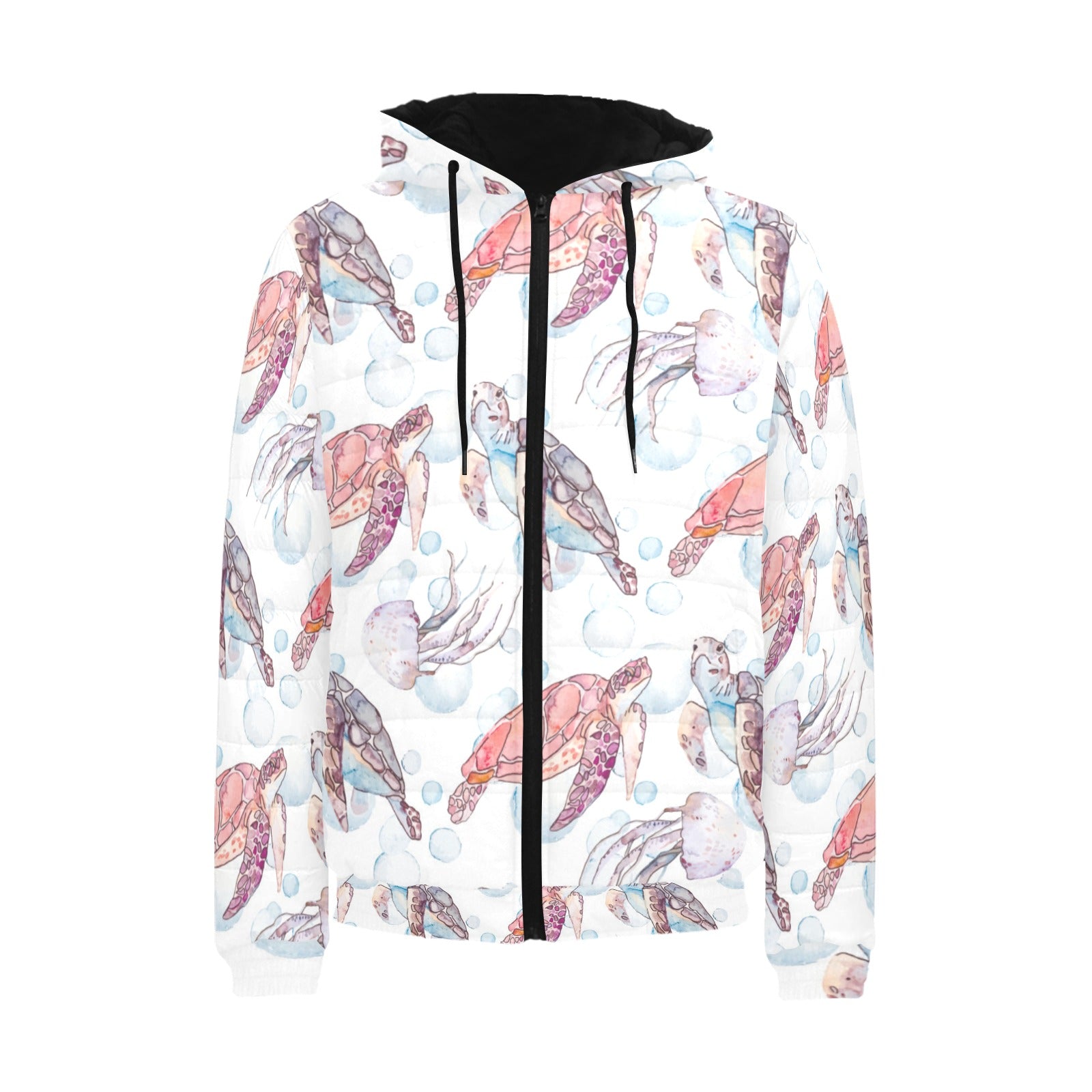 Watercolor sea turtle jellyfish pattern Men's Padded Hooded Jacket