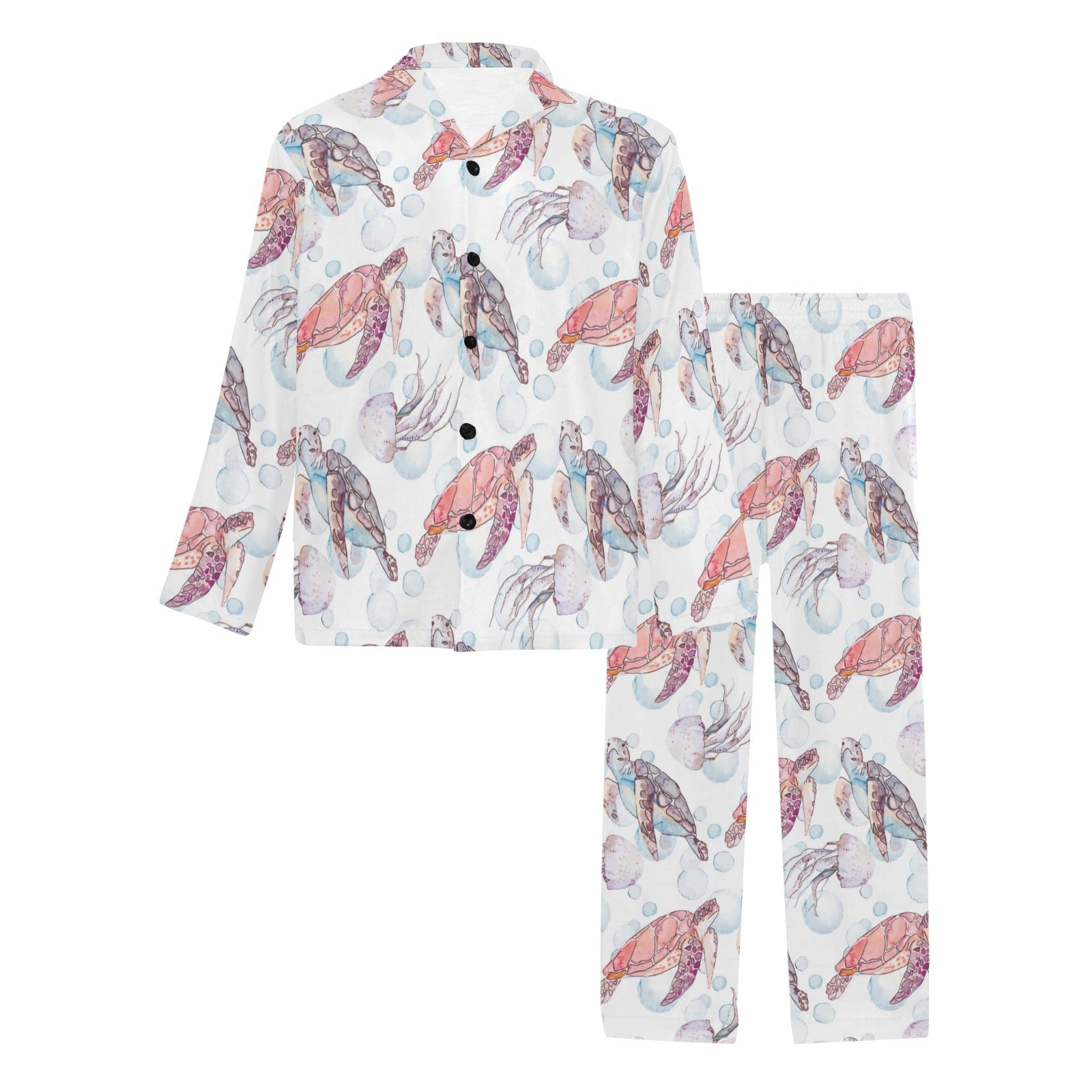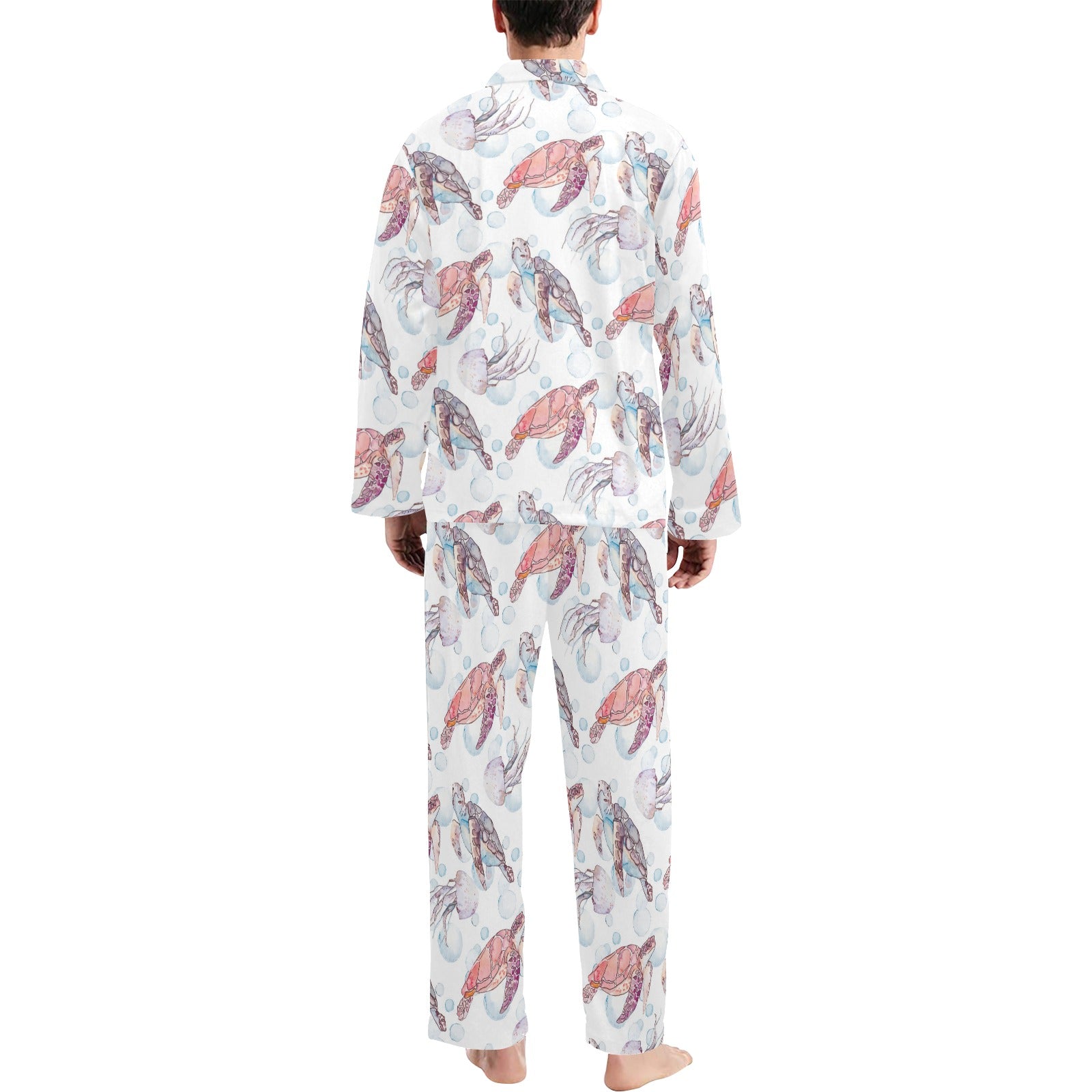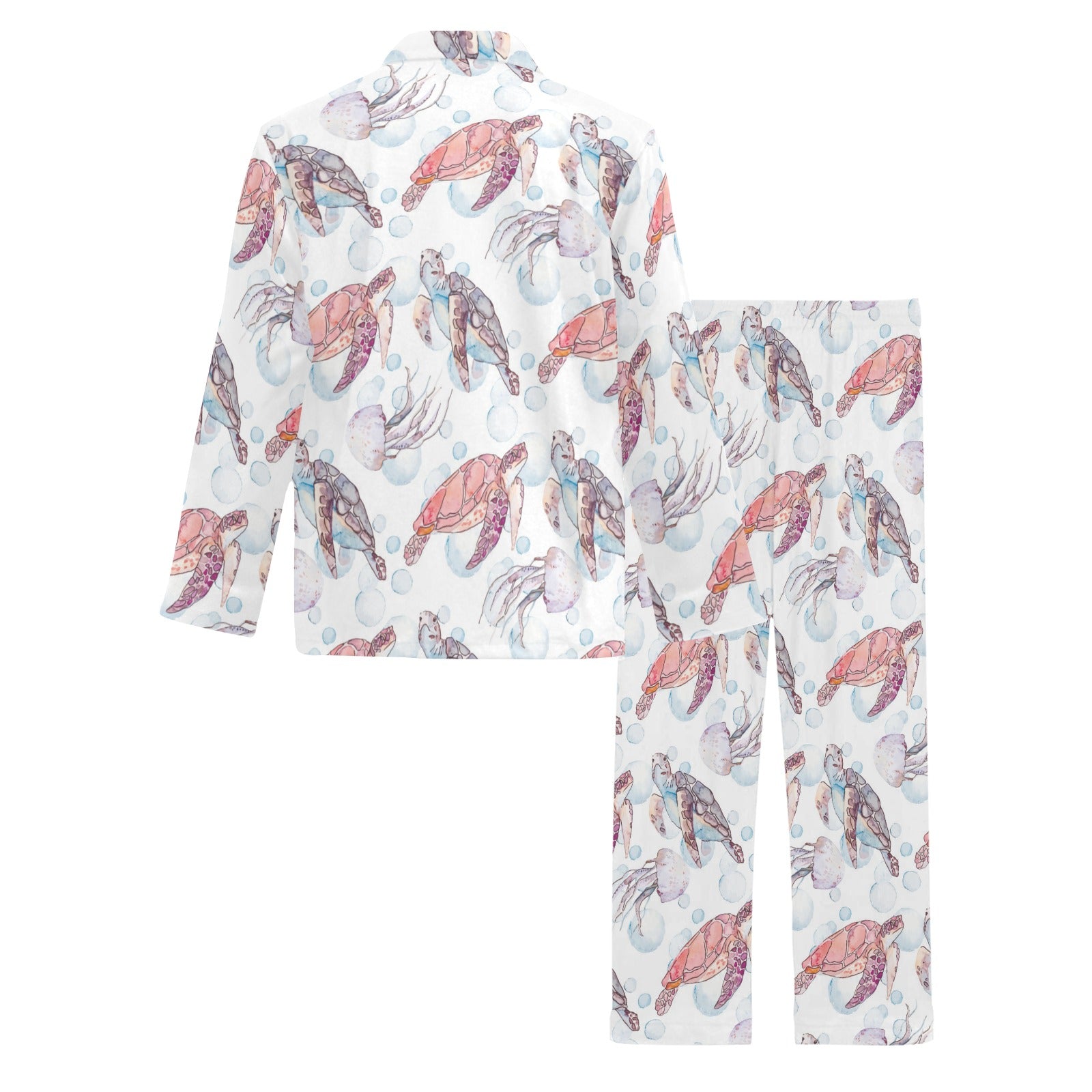 Watercolor sea turtle jellyfish pattern Men's Long Pajama Set