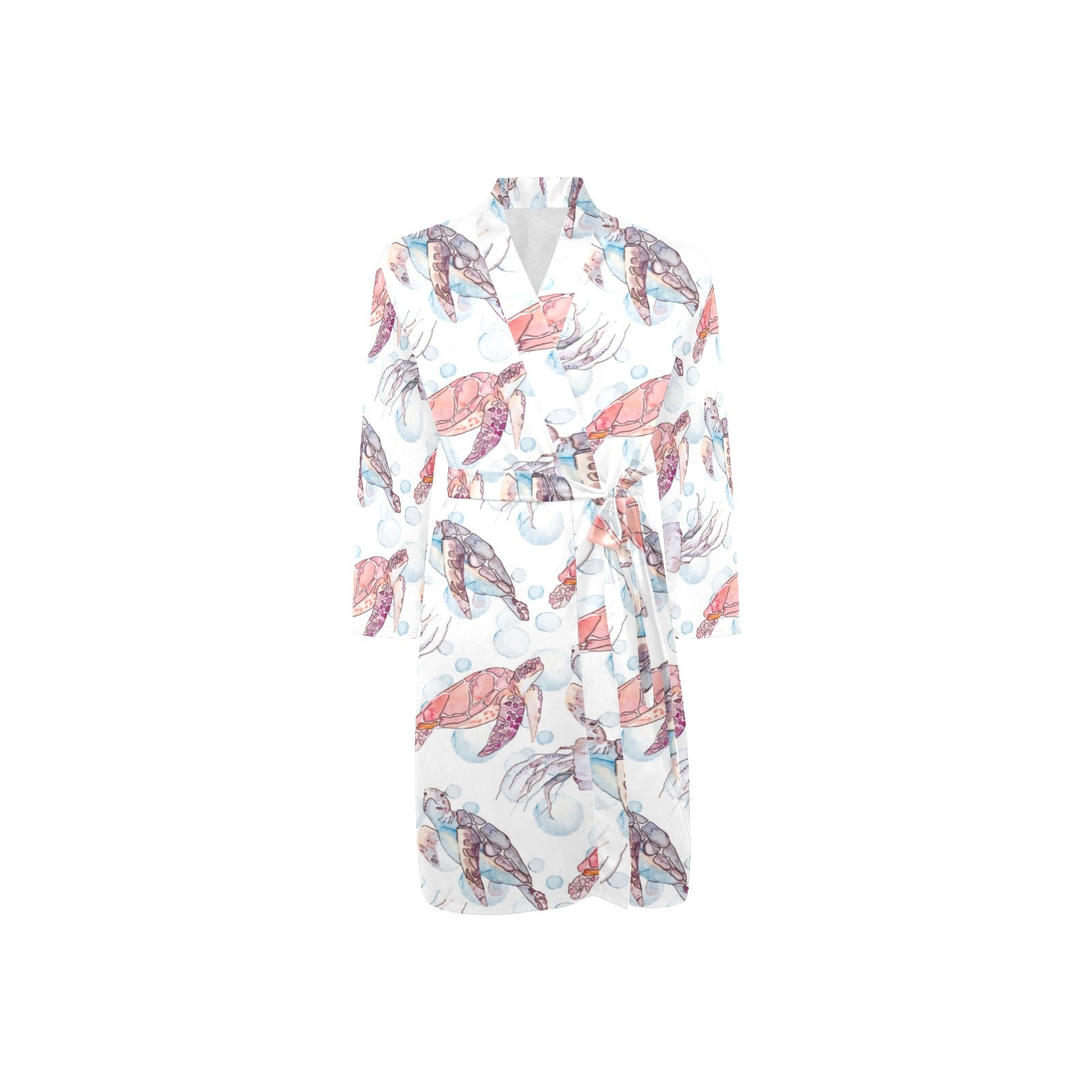 Watercolor sea turtle jellyfish pattern Men's Long Sleeve Belted Night Robe
