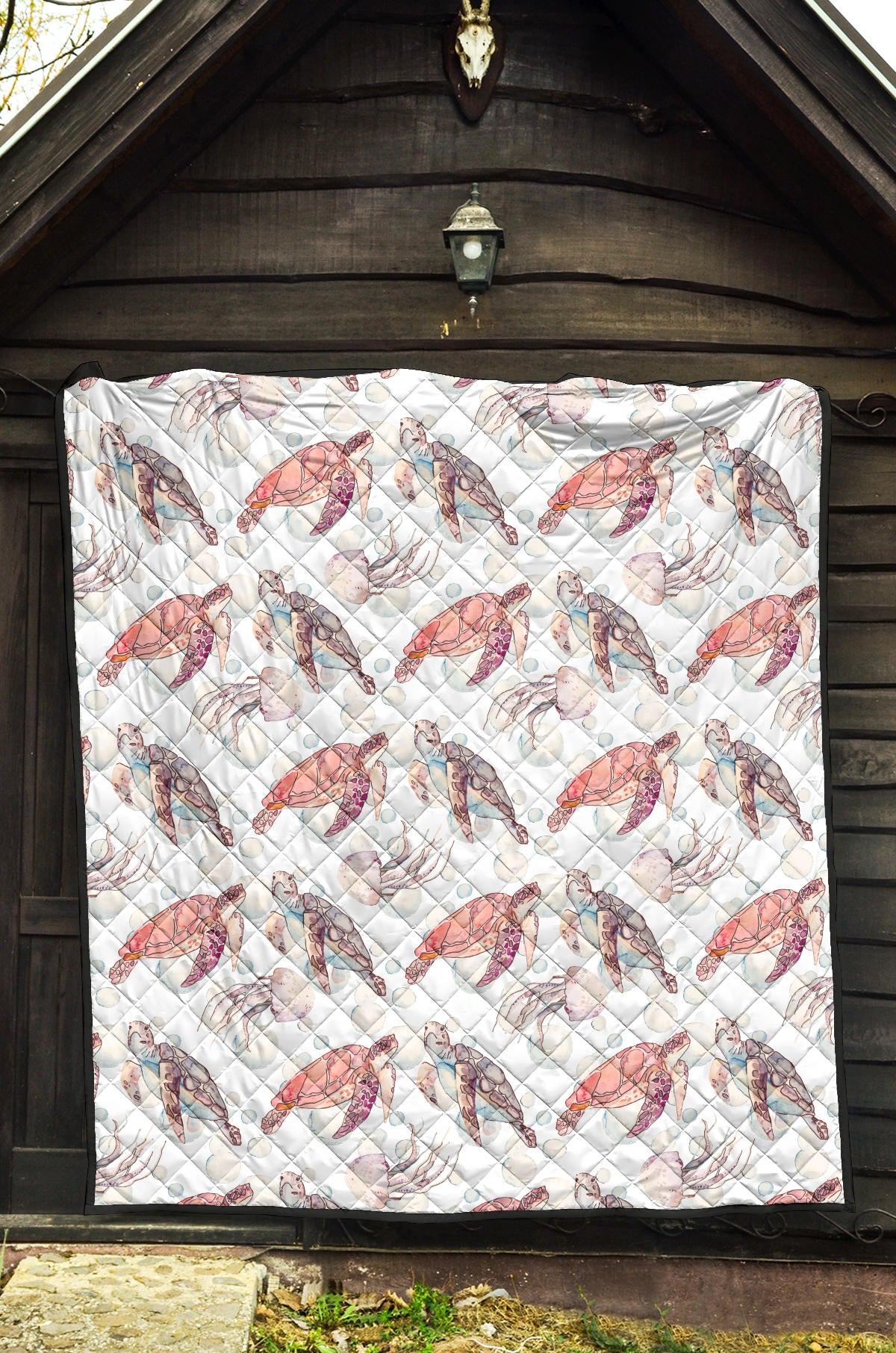 Watercolor Sea Turtle Jellyfish Pattern Premium Quilt is a uniqued design and limited item. It made to order, hand printed, and sewn with love in our factory.
