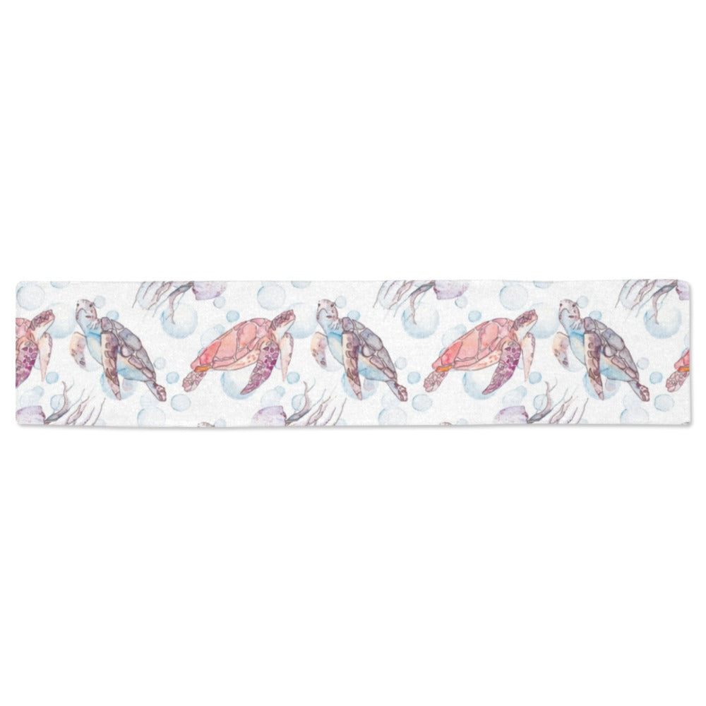 Watercolor sea turtle jellyfish pattern Table Runner