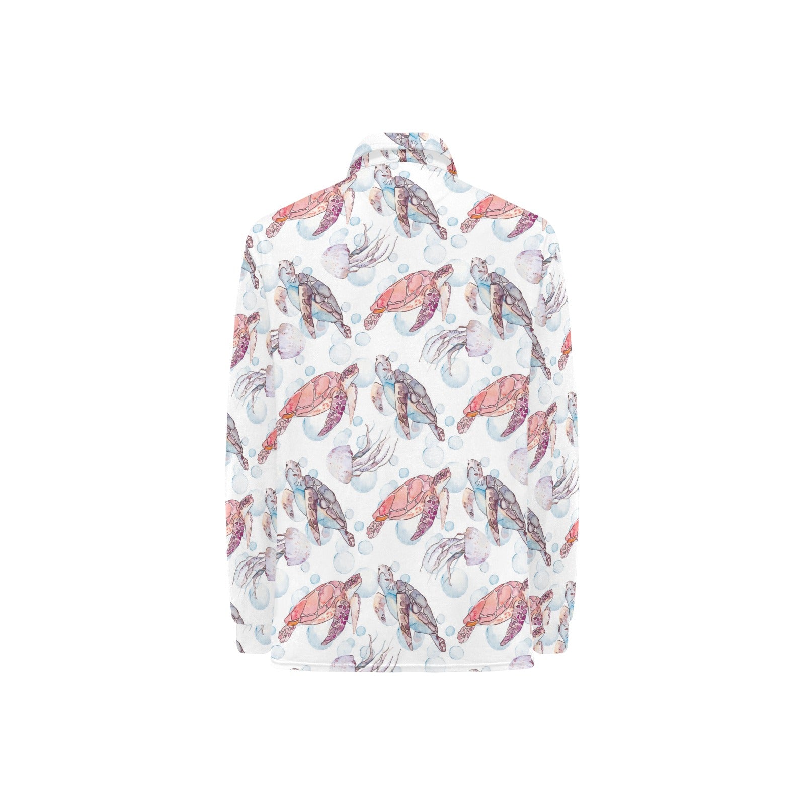 Watercolor sea turtle jellyfish pattern Women's Long Sleeve Polo Shirt