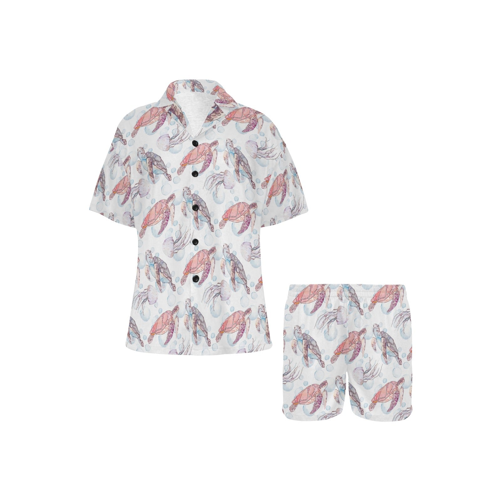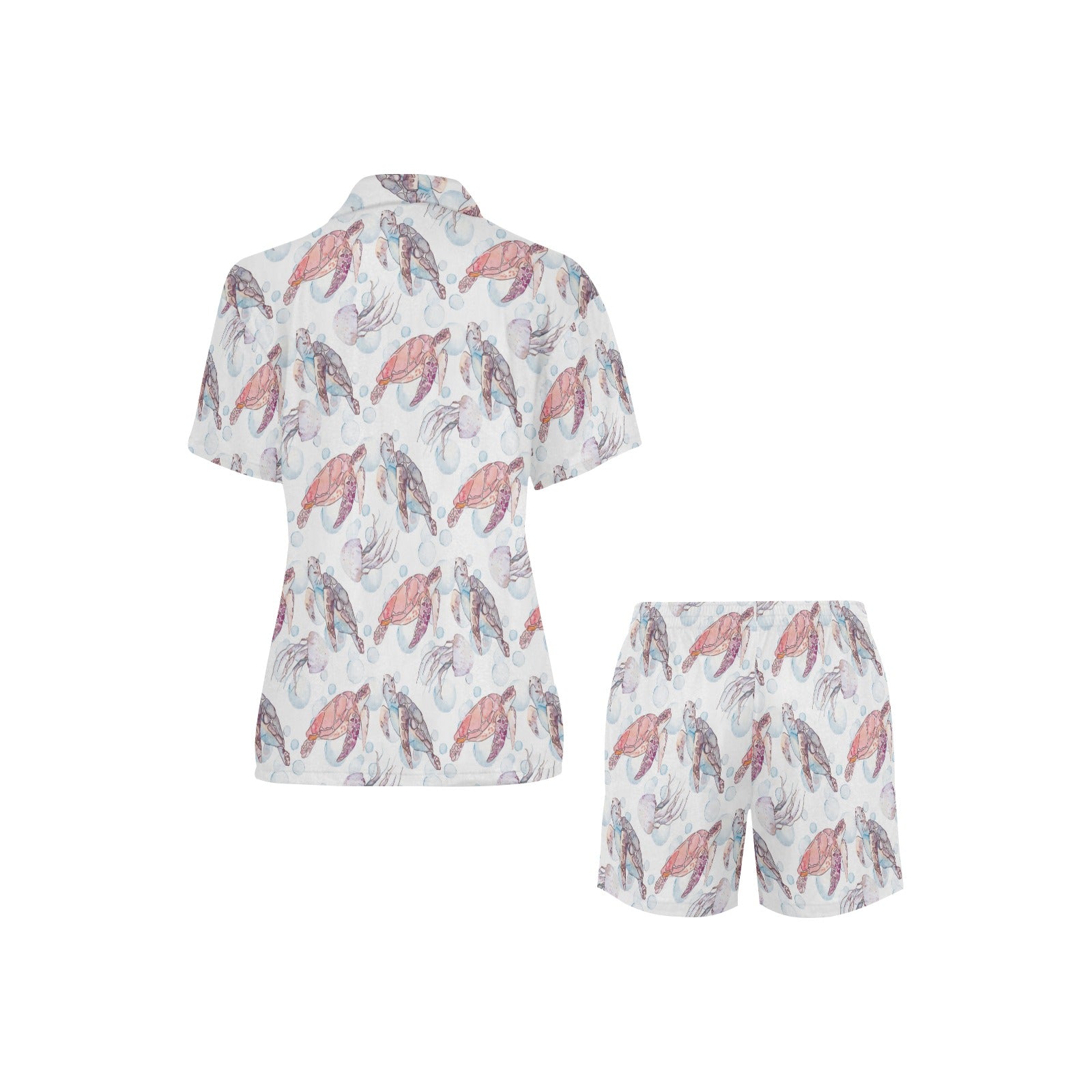 Watercolor sea turtle jellyfish pattern Women's V-Neck Short Pajama Set