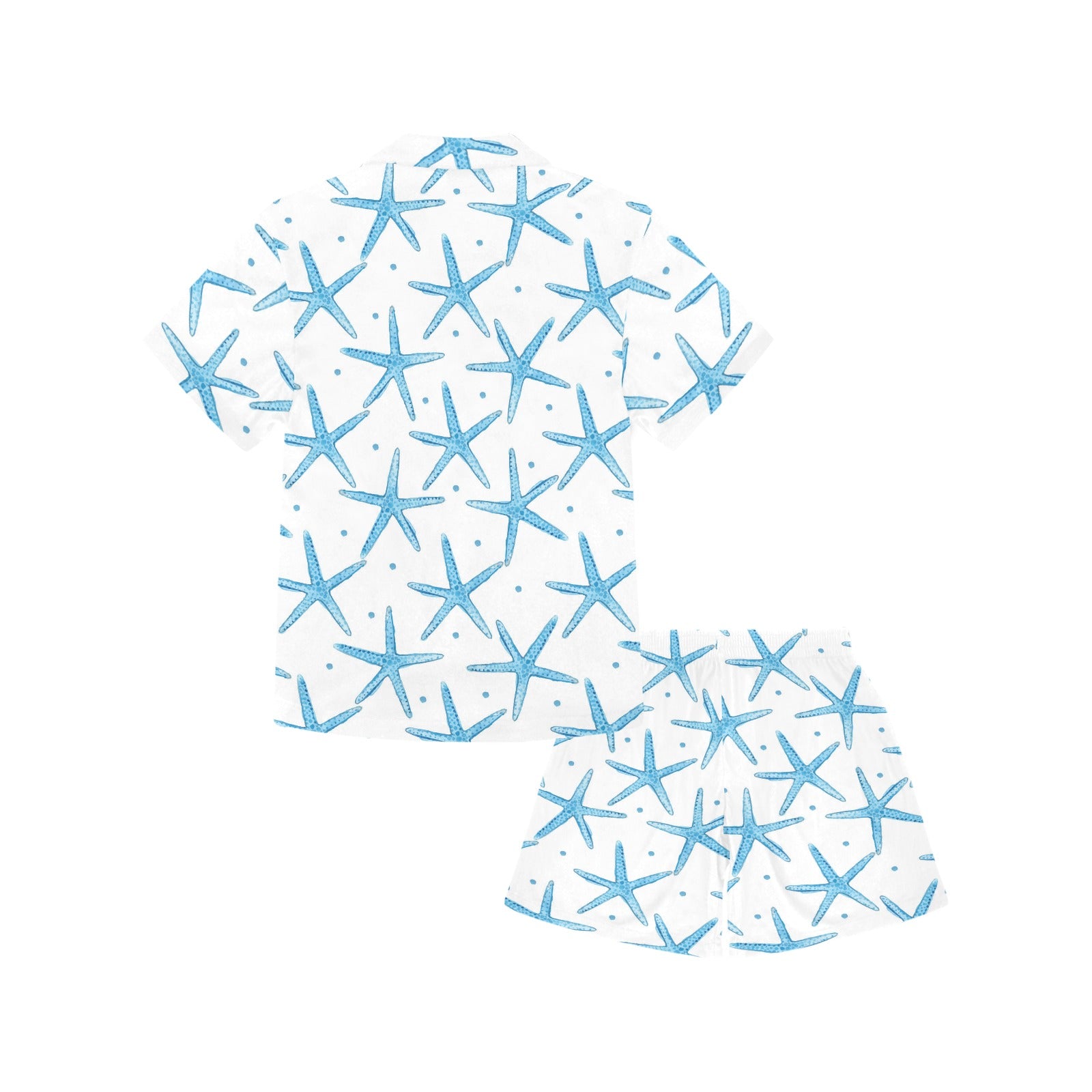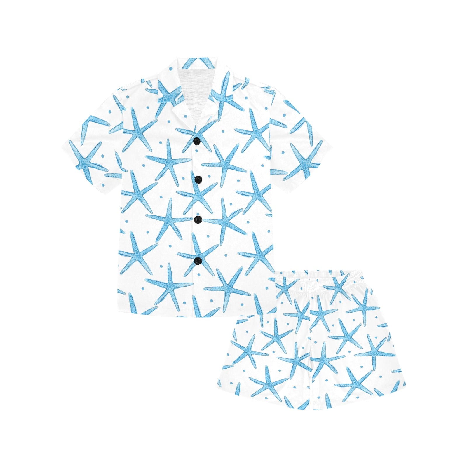 Watercolor starfish pattern Kids' Boys' Girls' V-Neck Short Pajama Set