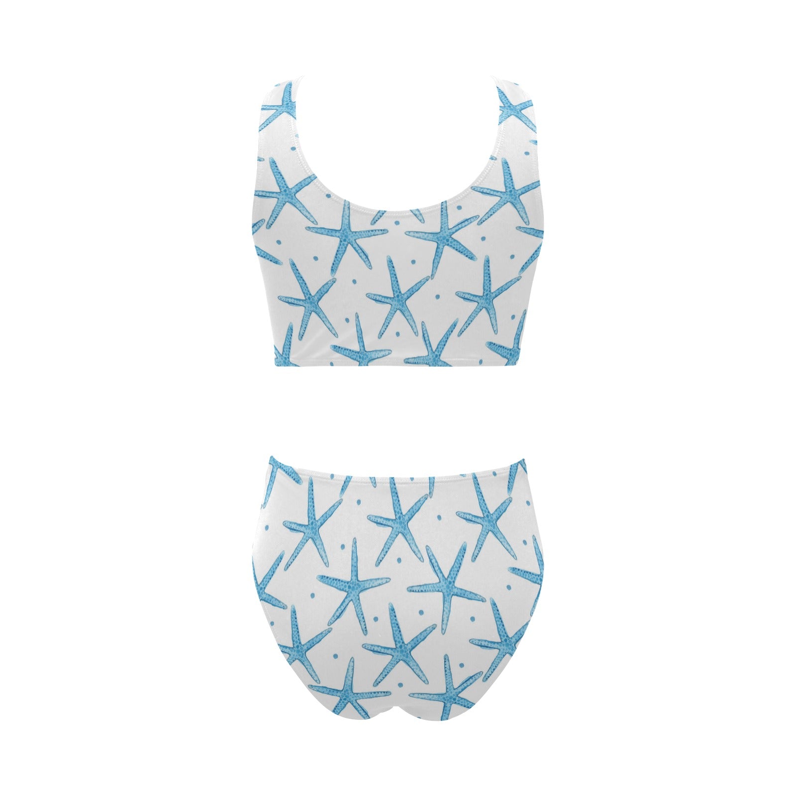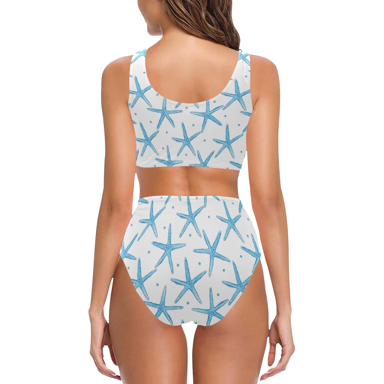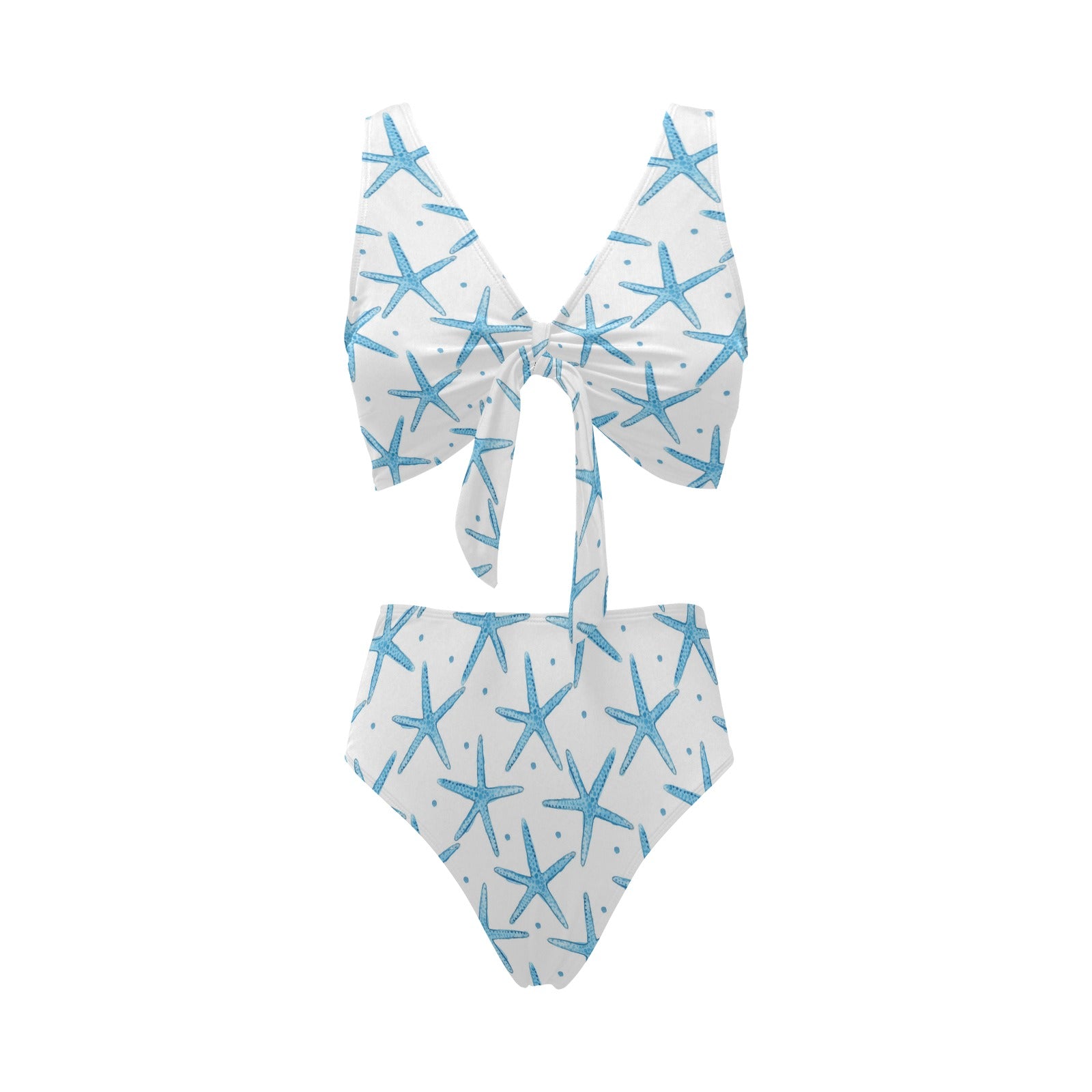 Watercolor starfish pattern Chest Bowknot High Waisted Bikini Swimsuit