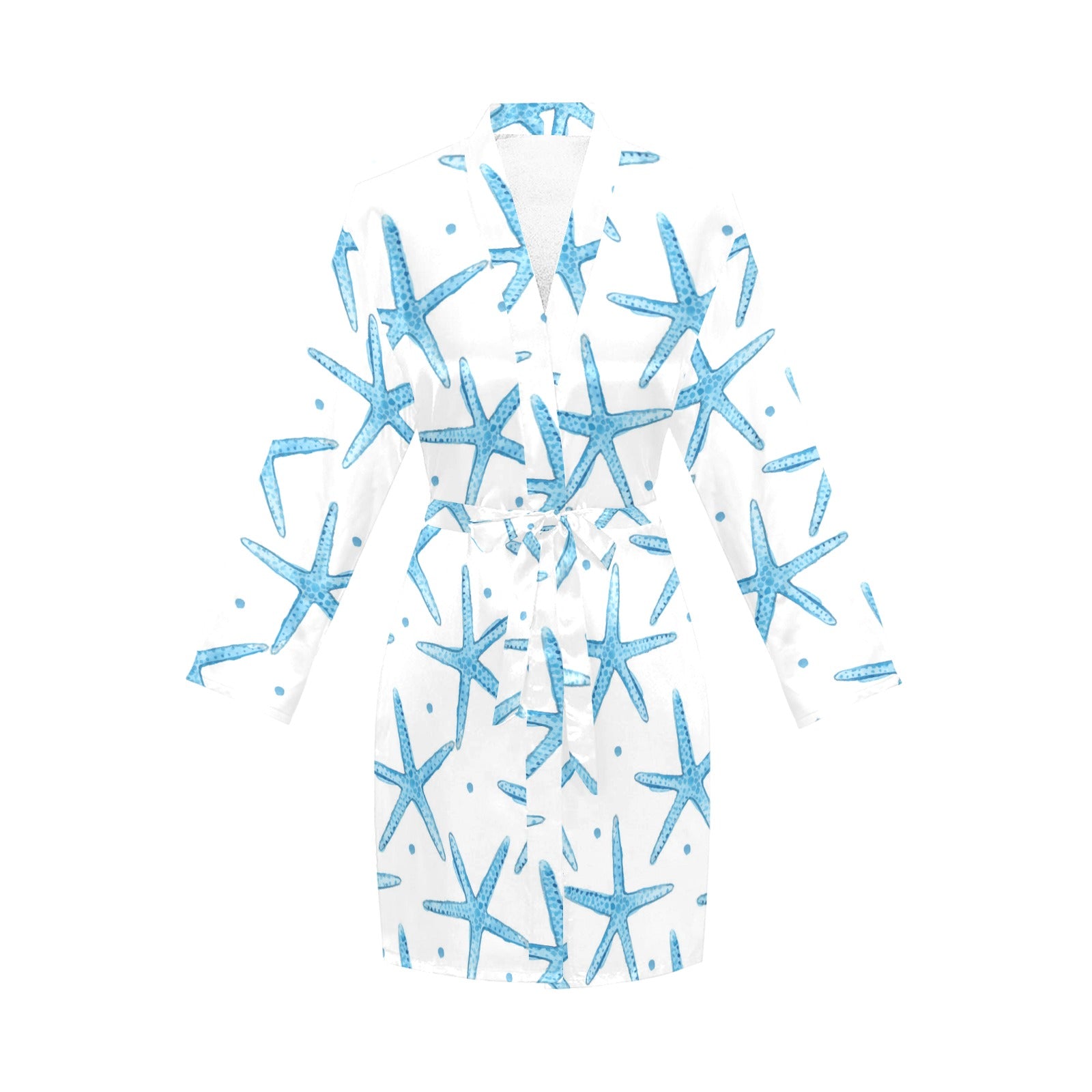 Watercolor starfish pattern Women's Long Sleeve Belted Night Robe