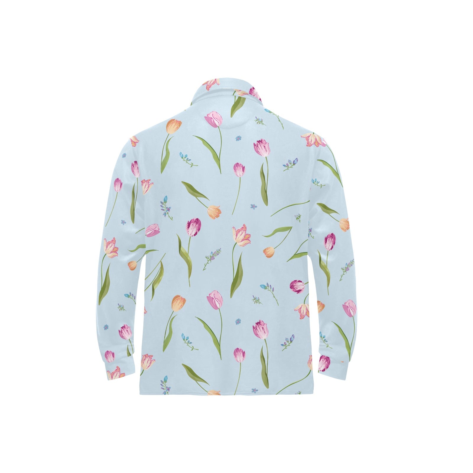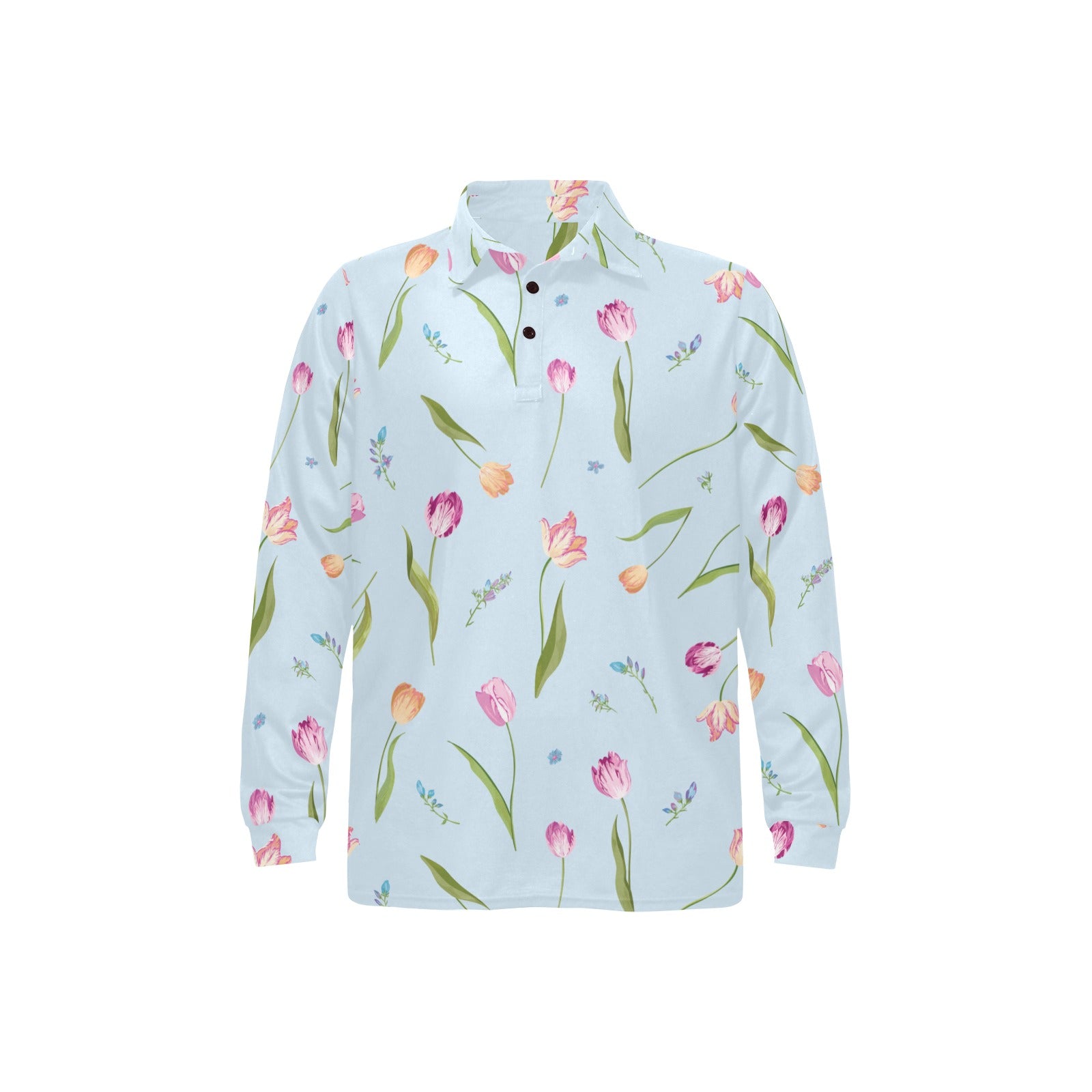 Watercolor Tulips pattern Men's Long Sleeve Polo Shirt