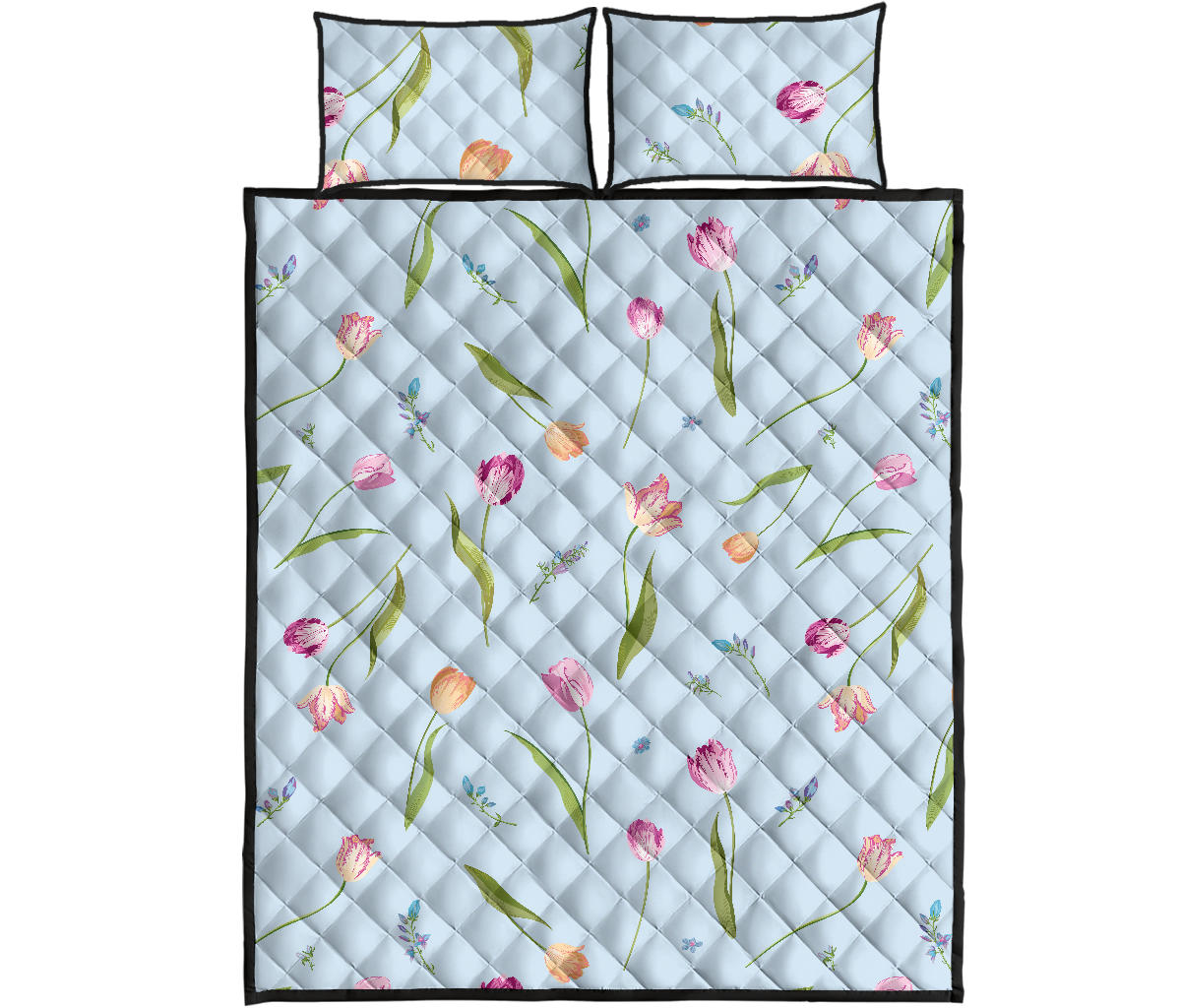 Watercolor Tulips pattern Quilt Bed Set