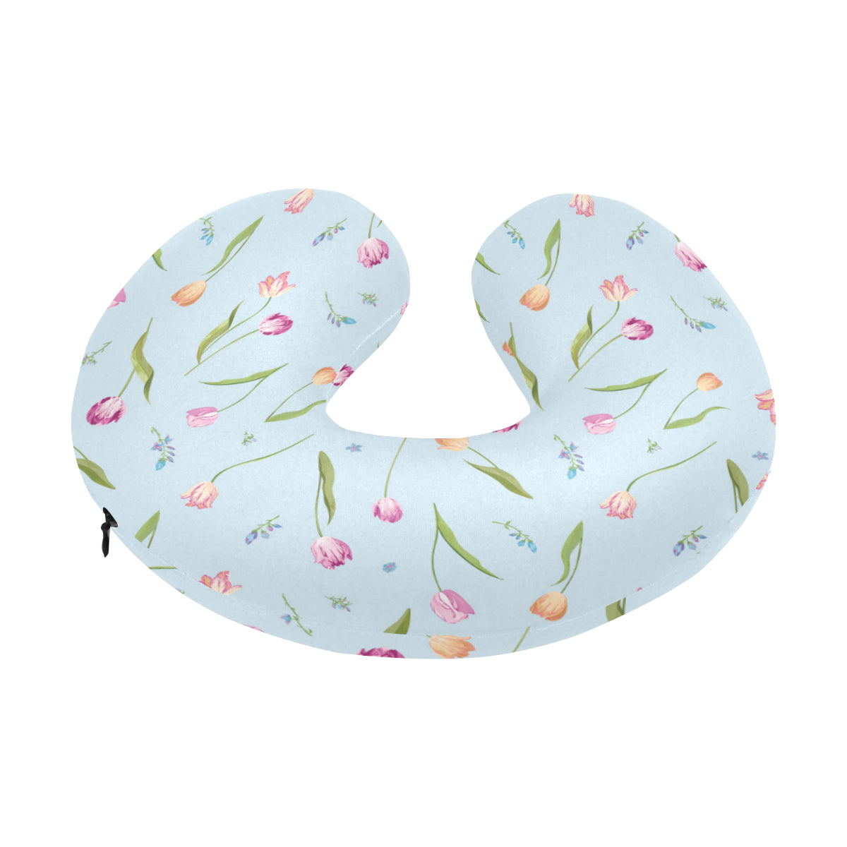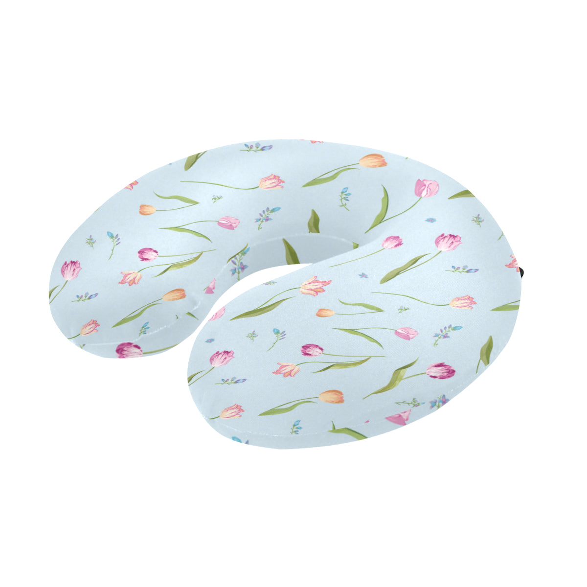Watercolor Tulips pattern U-Shaped Travel Neck Pillow