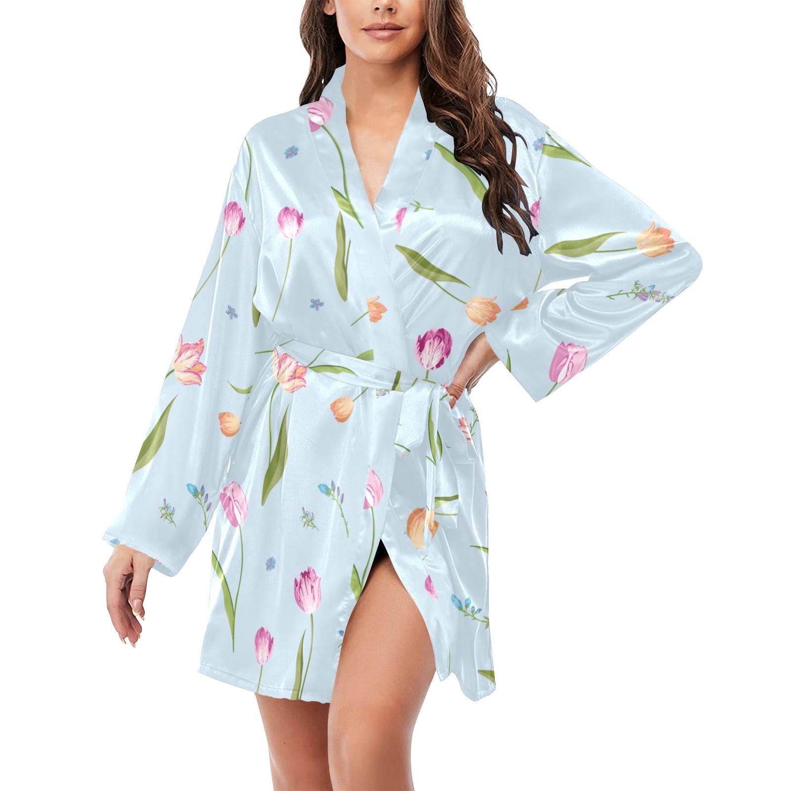 Watercolor Tulips pattern Women's Long Sleeve Belted Night Robe
