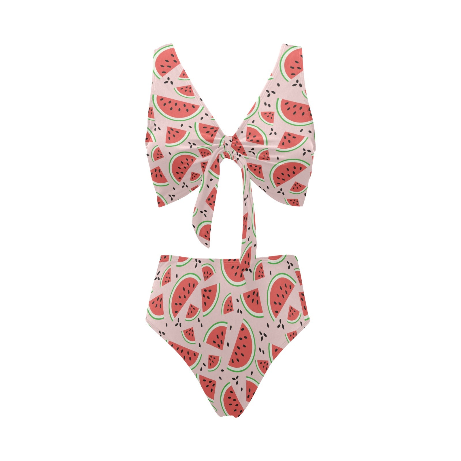 Watermelon pattern Chest Bowknot High Waisted Bikini Swimsuit