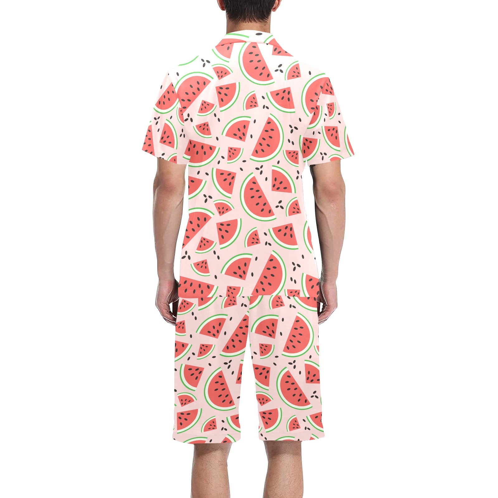 Watermelon pattern Men's V-Neck Short Pajama Set