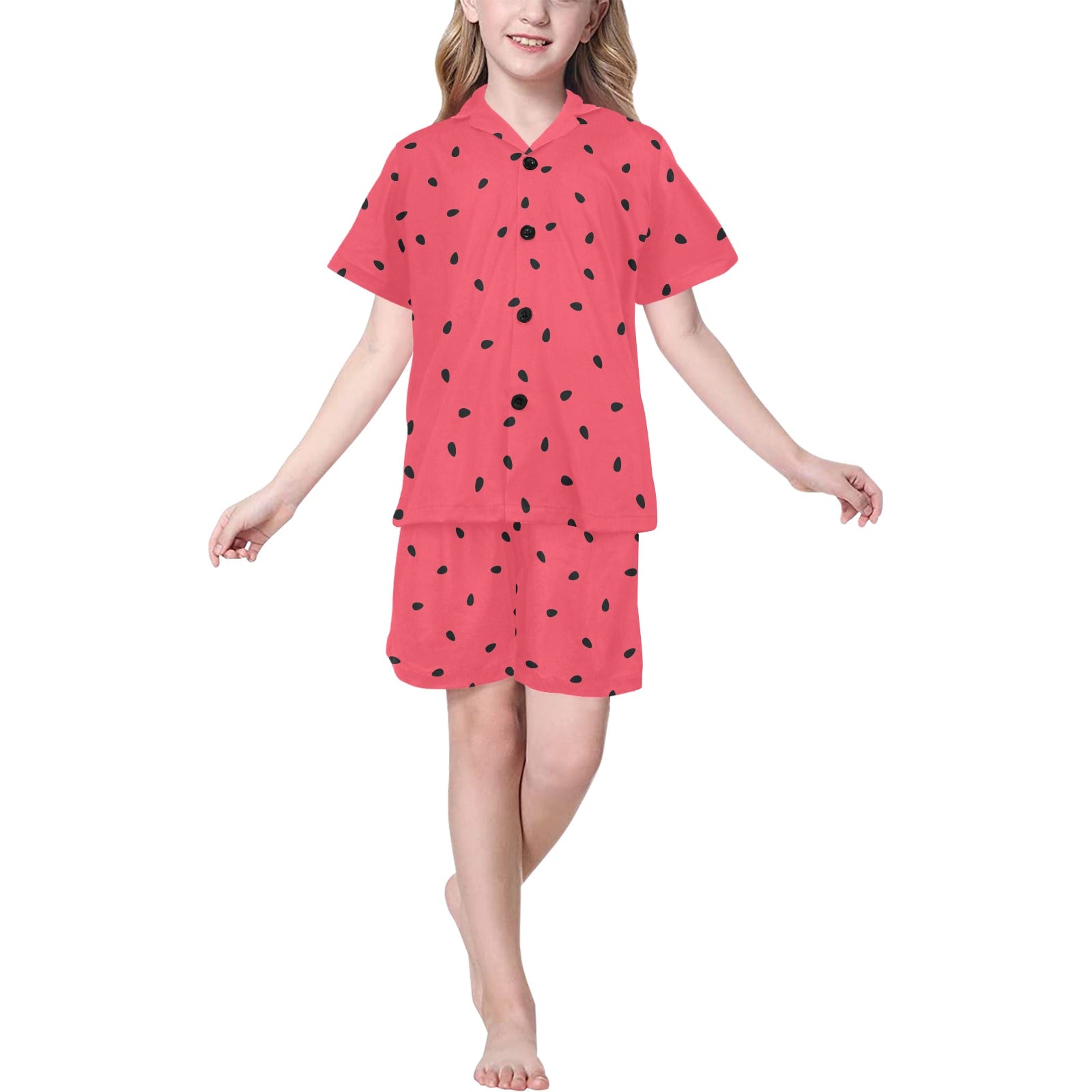 watermelon texture background Kids' Boys' Girls' V-Neck Short Pajama Set