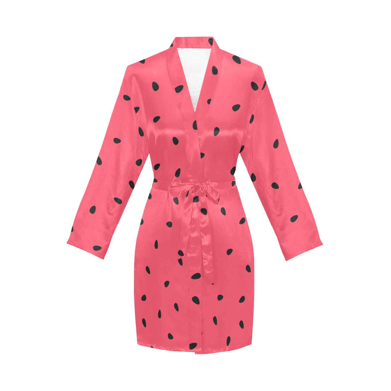 watermelon texture background Women's Long Sleeve Belted Night Robe