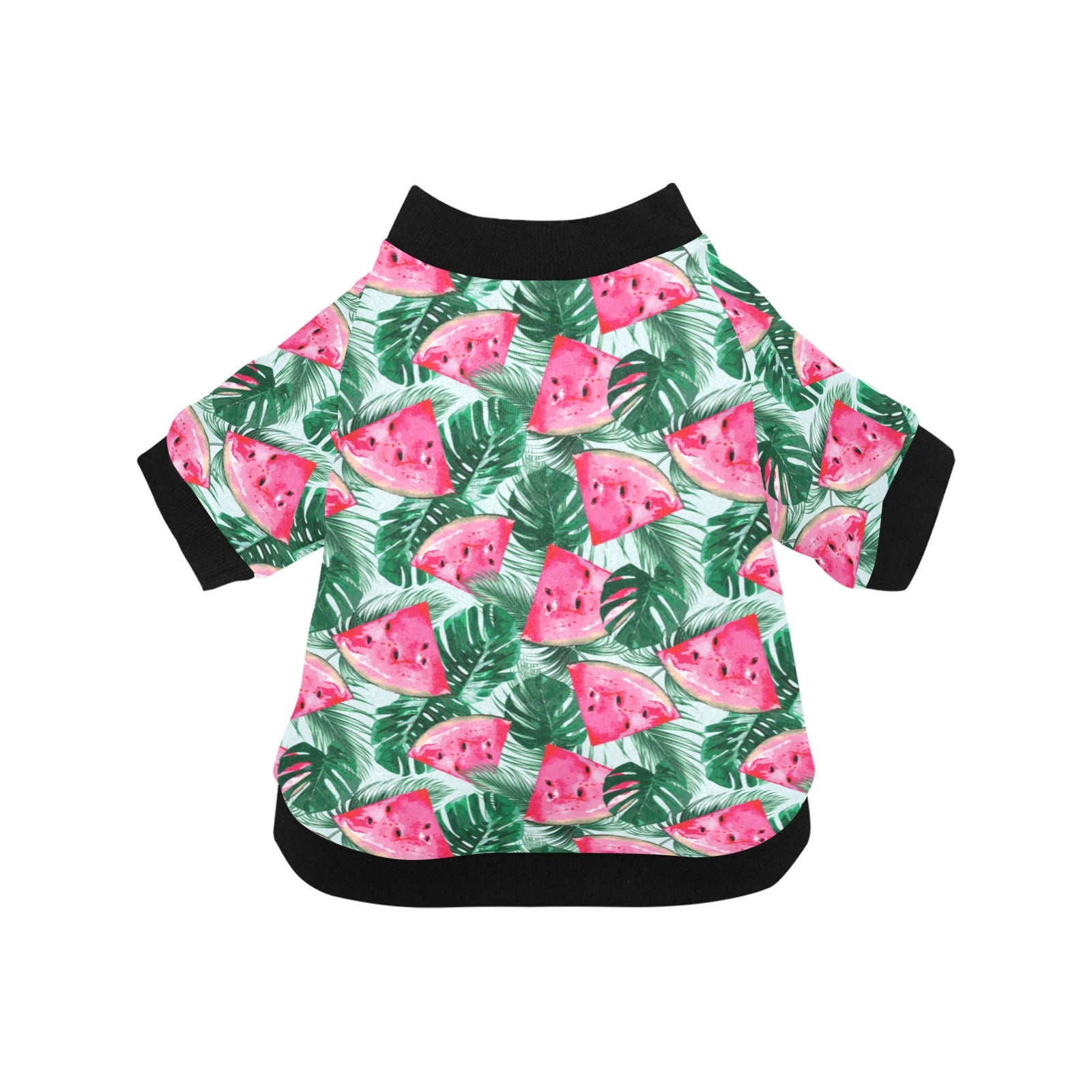 Watermelons tropical palm leaves pattern All Over Print Pet Dog Round Neck Fuzzy Shirt