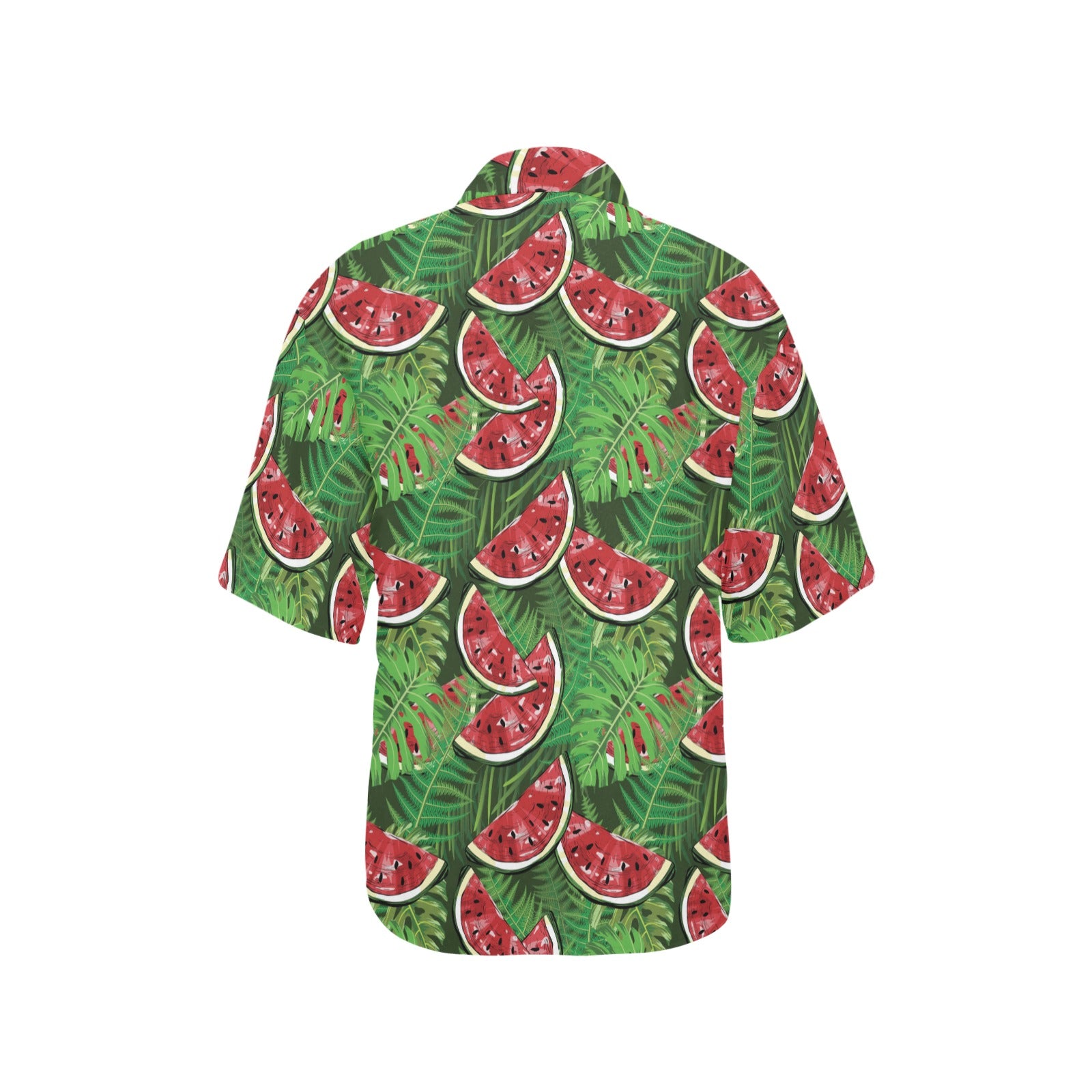 Watermelons tropical palm leaves pattern backgroun Women's All Over Print Hawaiian Shirt