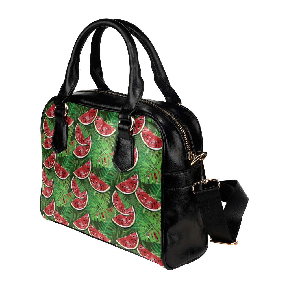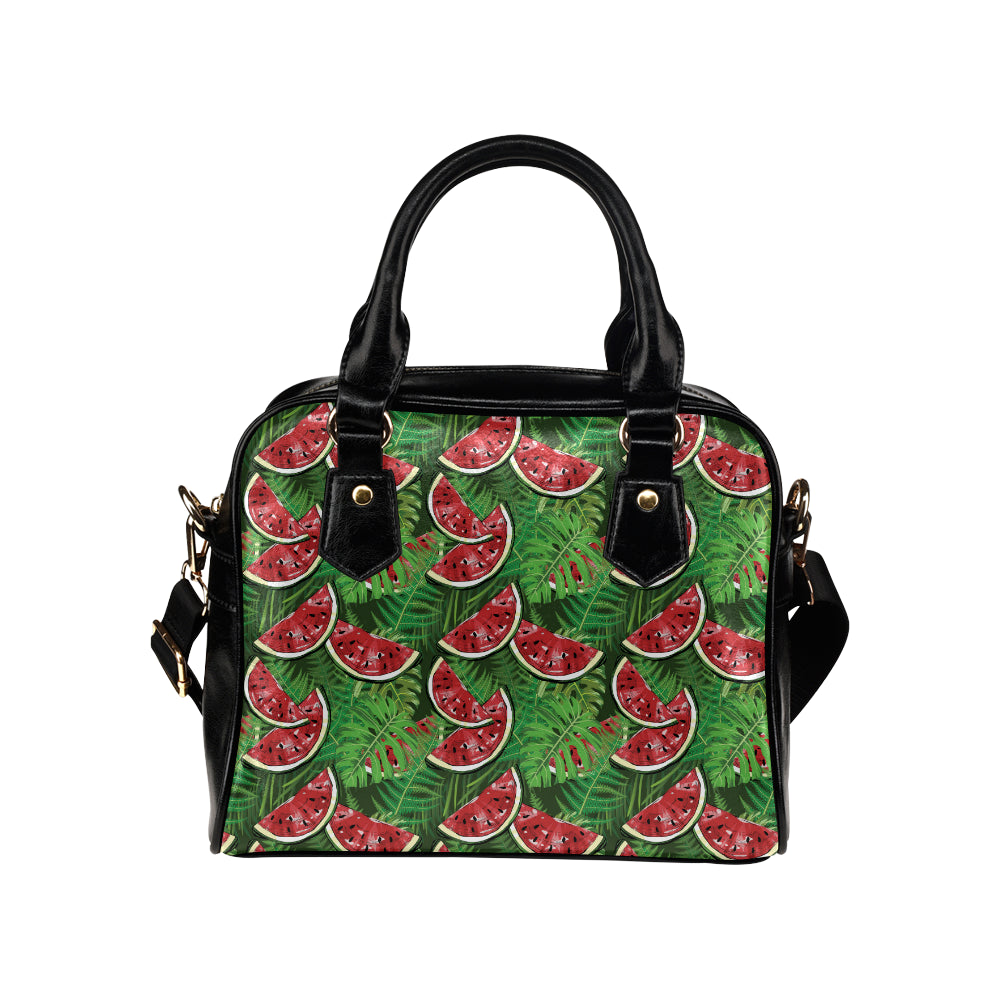 Watermelons tropical palm leaves pattern backgroun Shoulder Handbag is a uniqued design and limited item. It made to order, hand printed, and sewn with love in our factory.