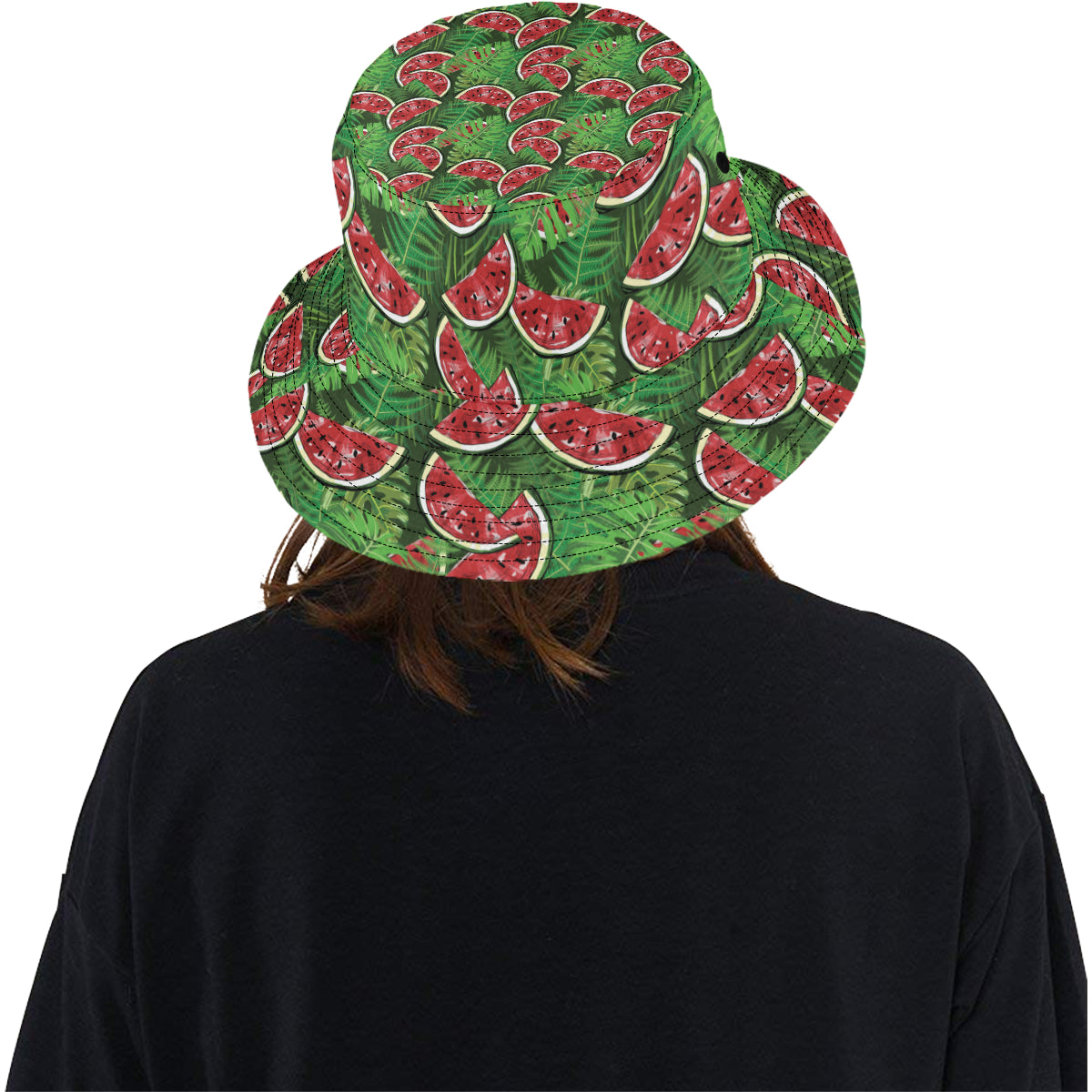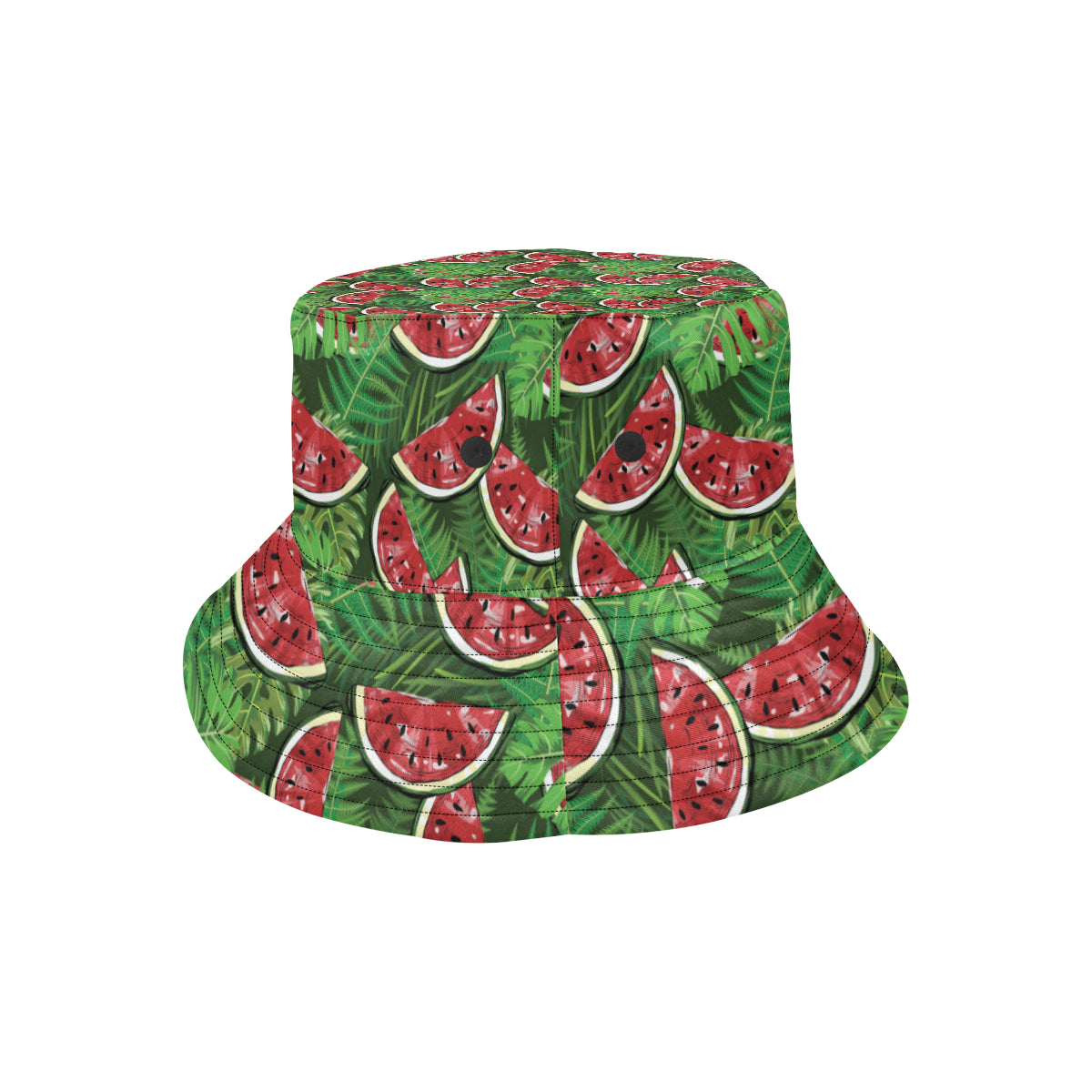 Watermelons tropical palm leaves pattern backgroun Unisex Bucket Hat