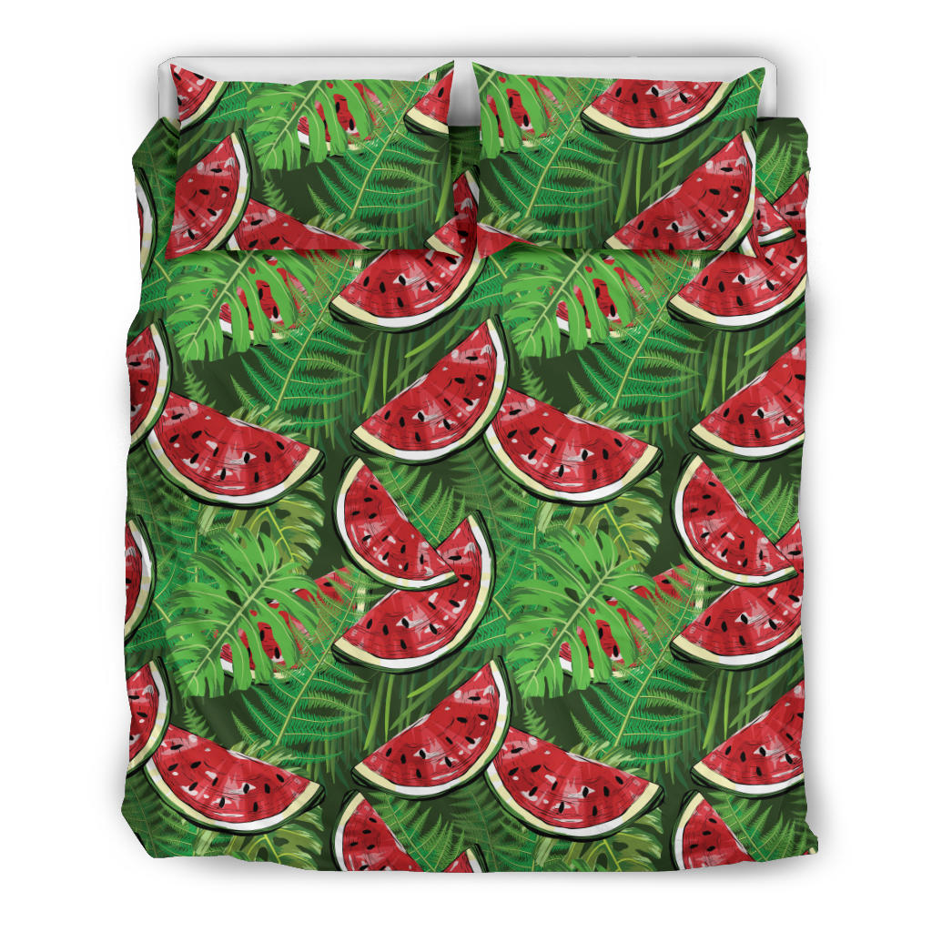 Watermelons Tropical Palm Leaves Pattern Background Bedding Set