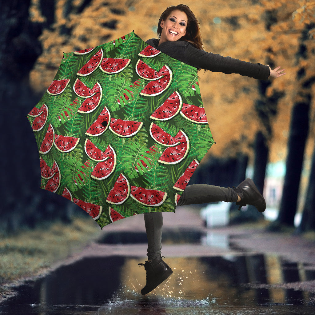 Watermelons Tropical Palm Leaves Pattern Background Umbrella