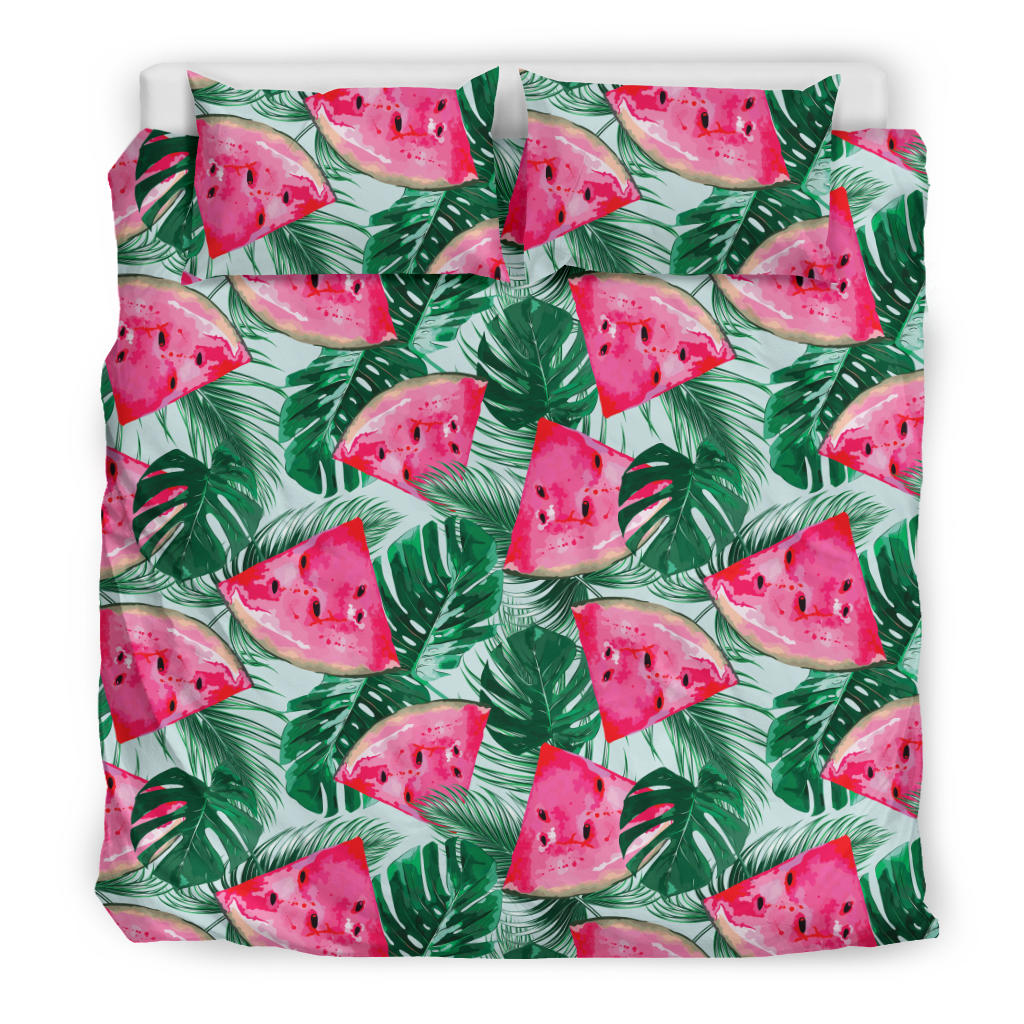 Watermelons tropical palm leaves pattern Bedding Set is a uniqued design and limited item. It made to order, hand printed, and sewn with love in our factory.