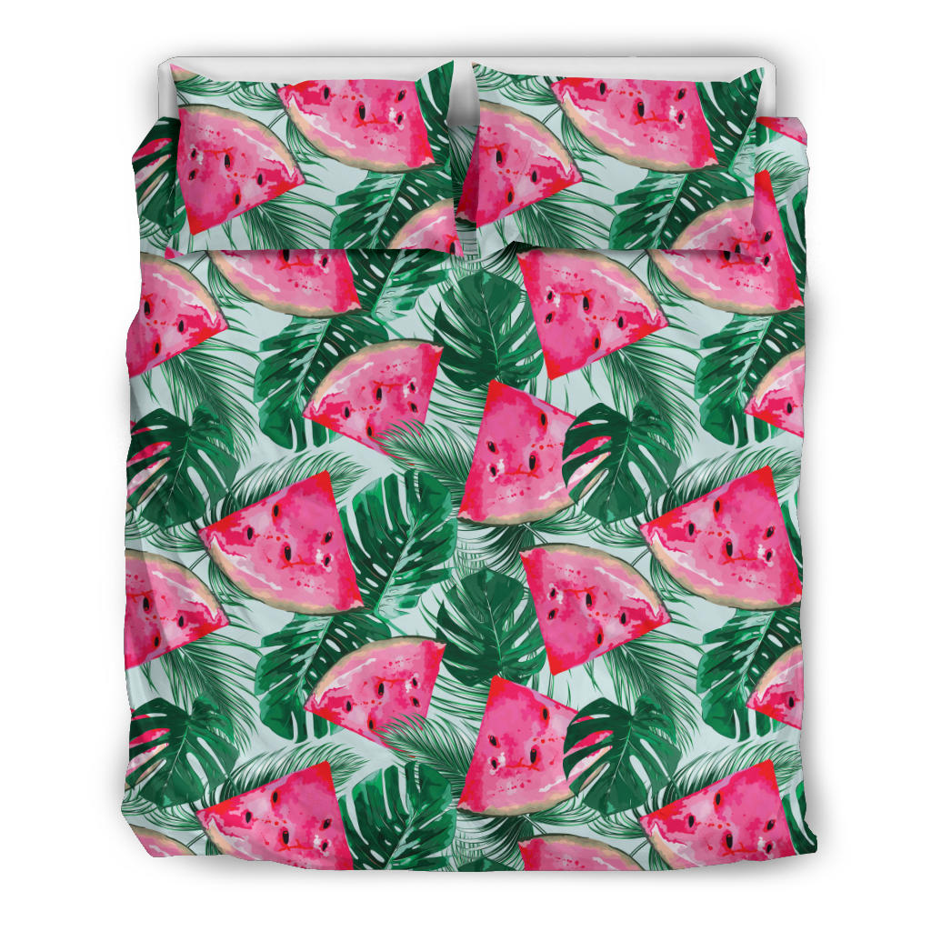 Watermelons Tropical Palm Leaves Pattern Bedding Set