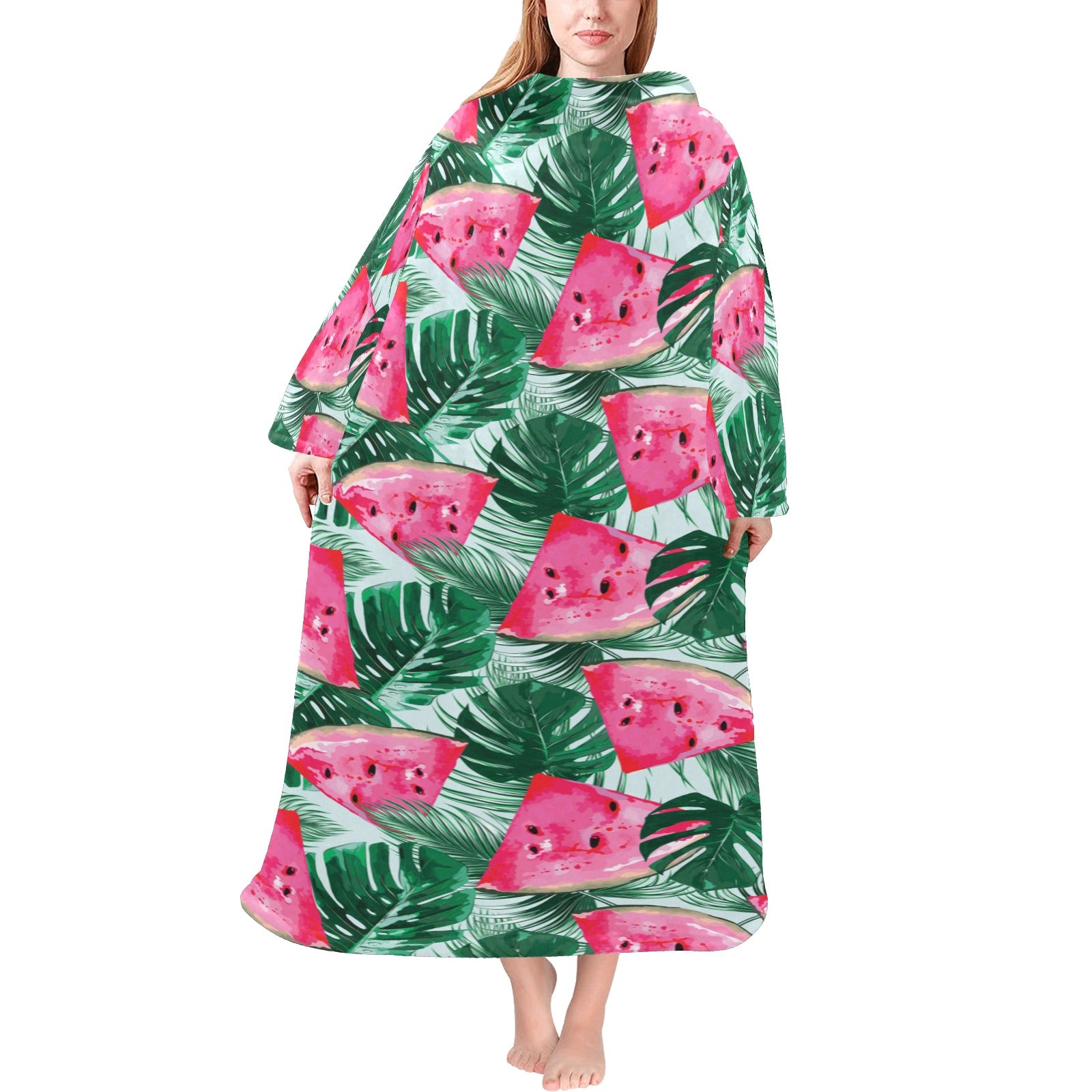 Watermelons tropical palm leaves pattern Blanket Robe with Sleeves