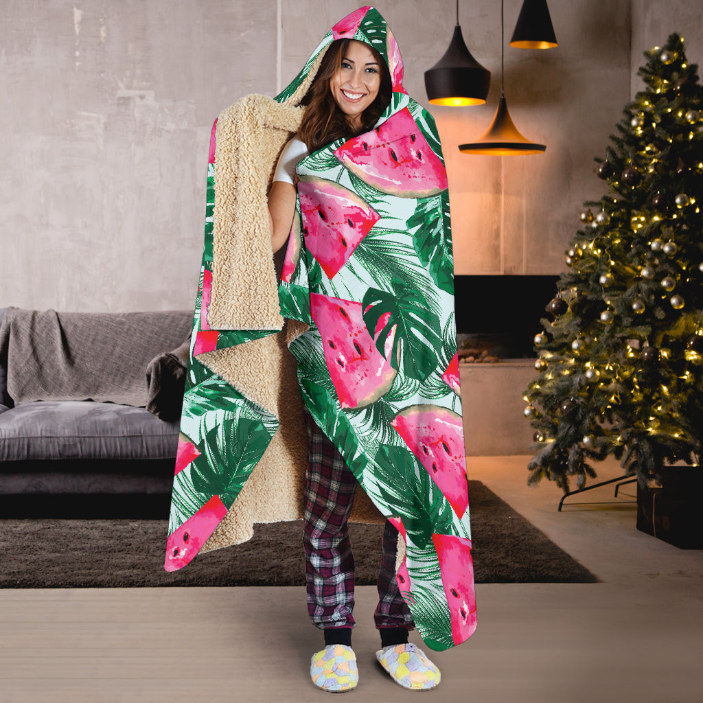 Watermelons tropical palm leaves pattern Hooded Blanket are custom-made-to-order and handcrafted to the highest quality standards.