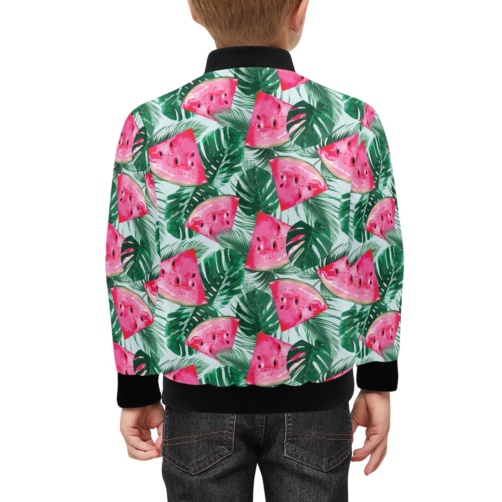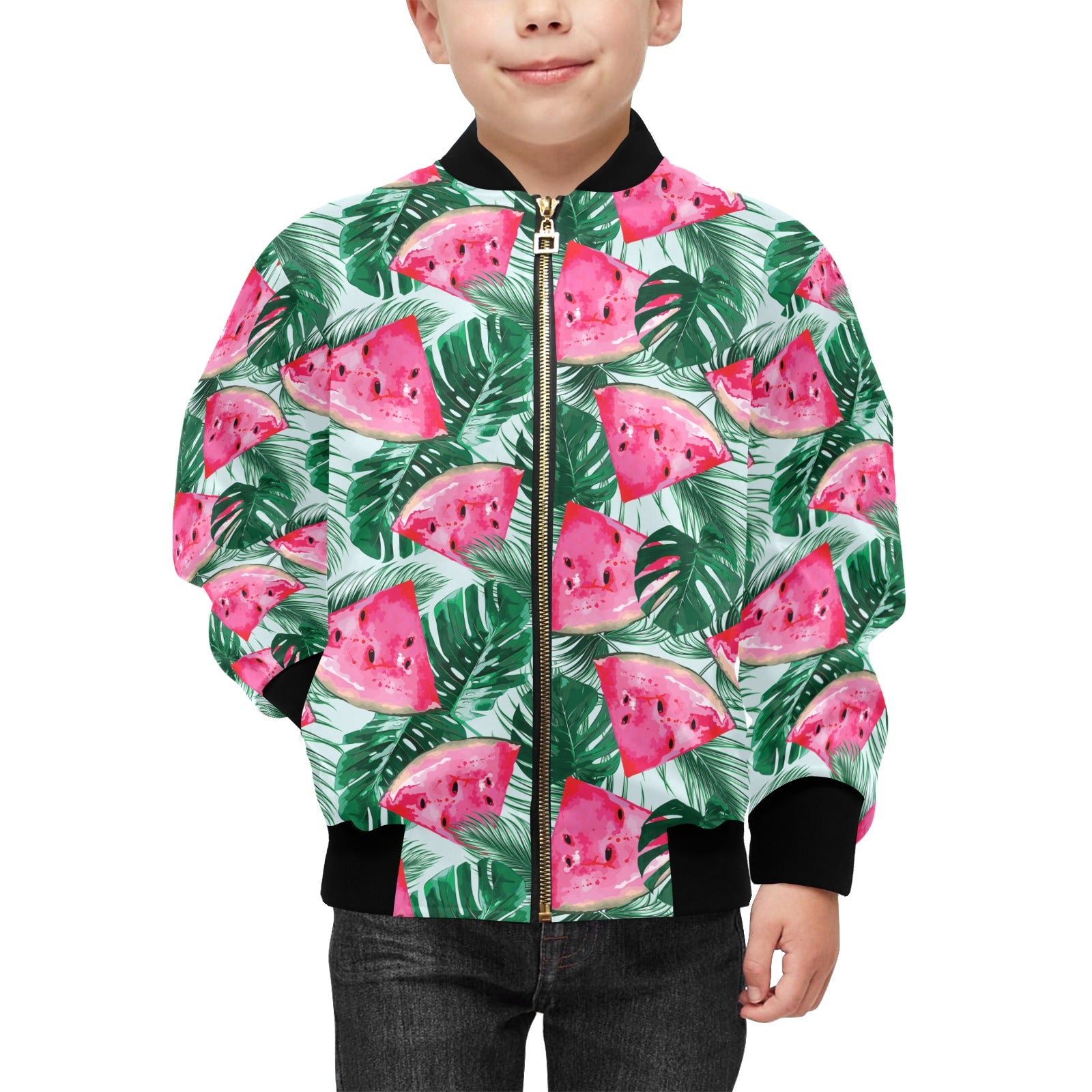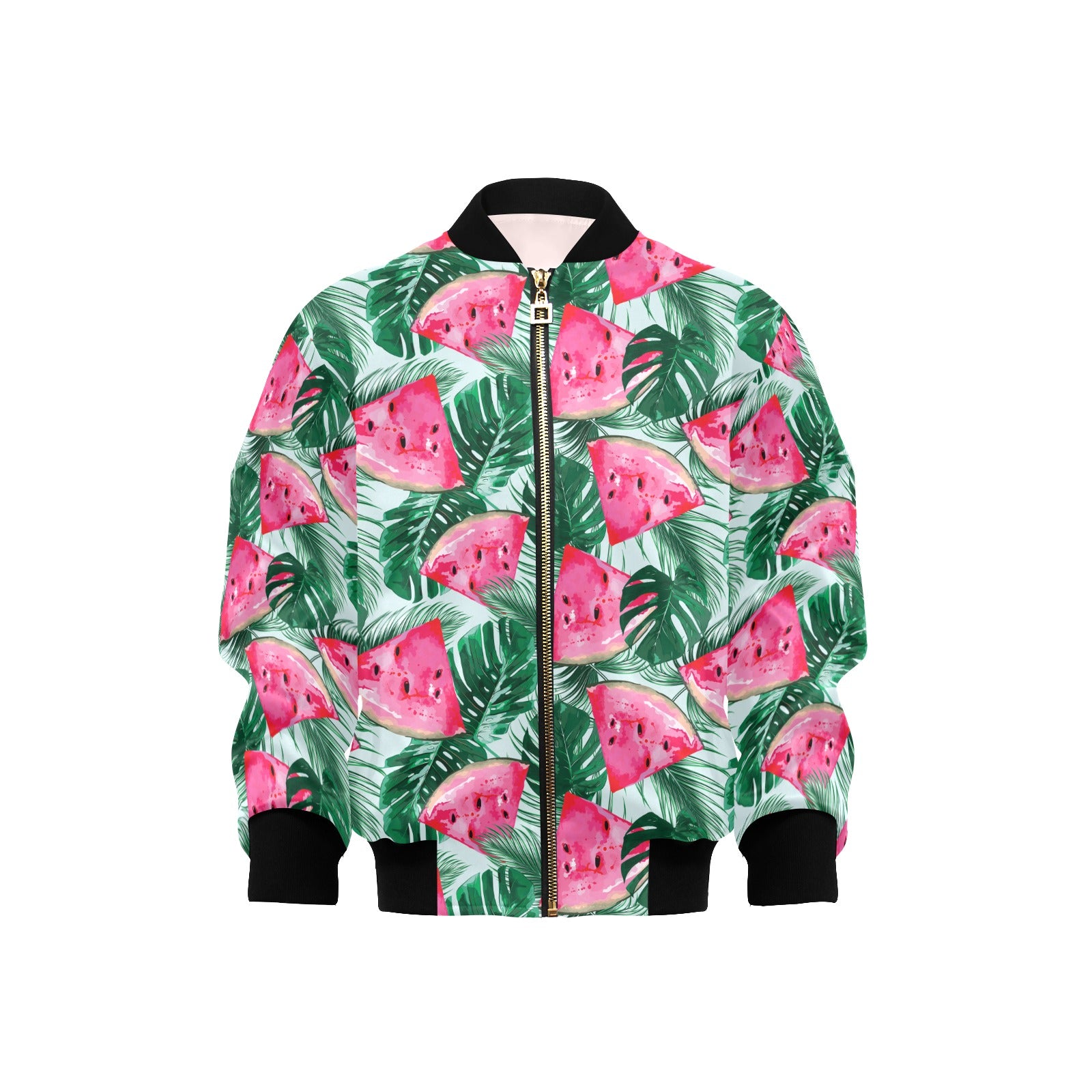 Watermelons tropical palm leaves pattern Kids' Boys' Girls' Bomber Jacket
