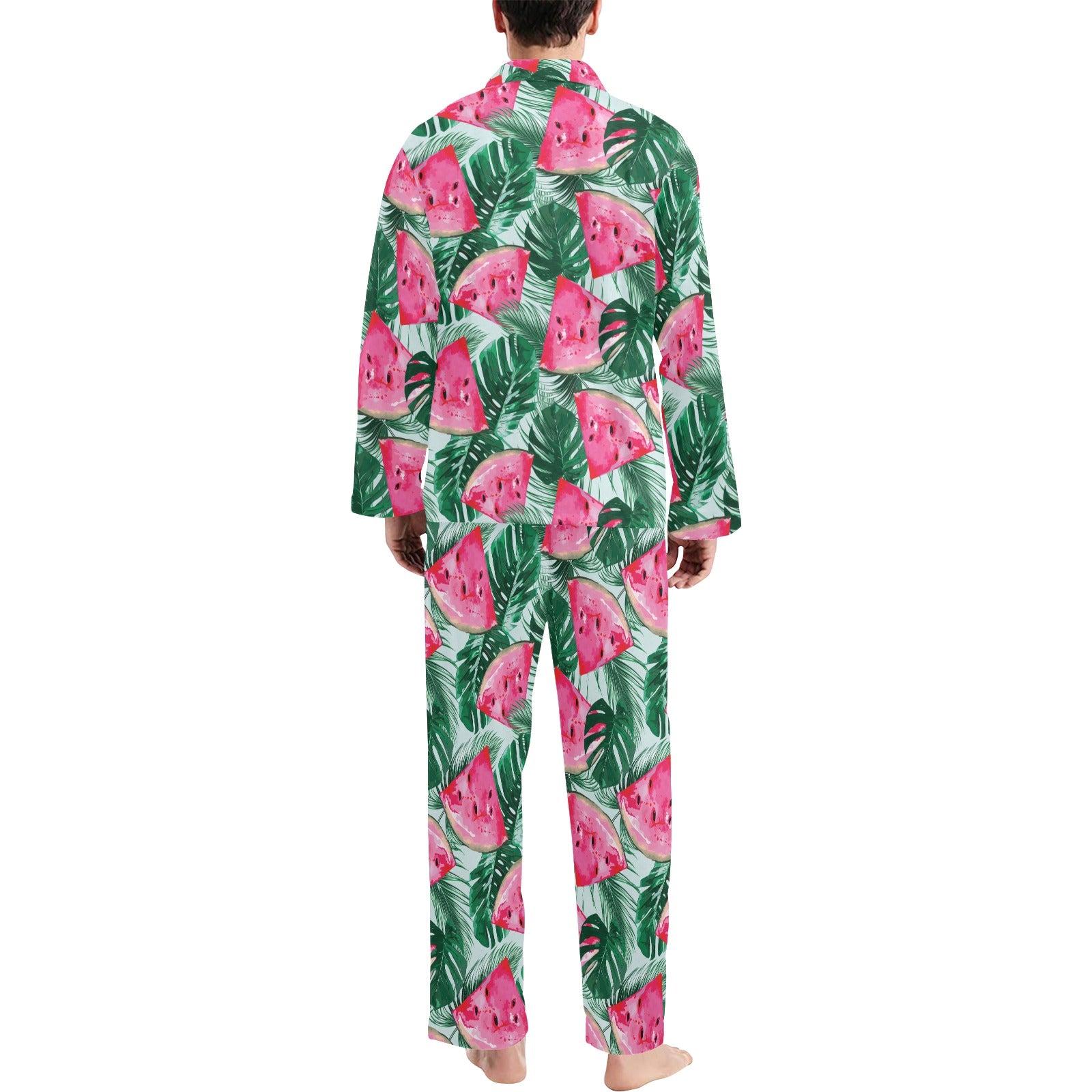 Watermelons tropical palm leaves pattern Men's Long Pajama Set